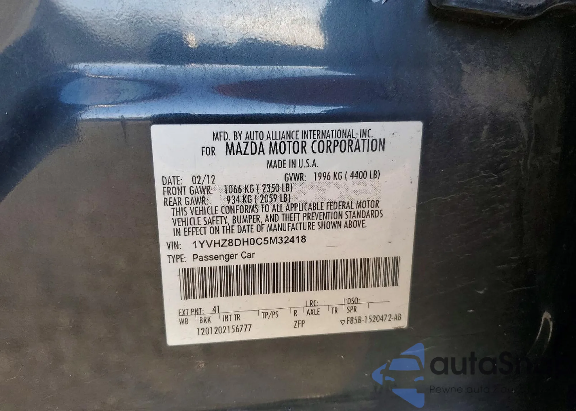 • VIN 1YVHZ8DH0C5M32418