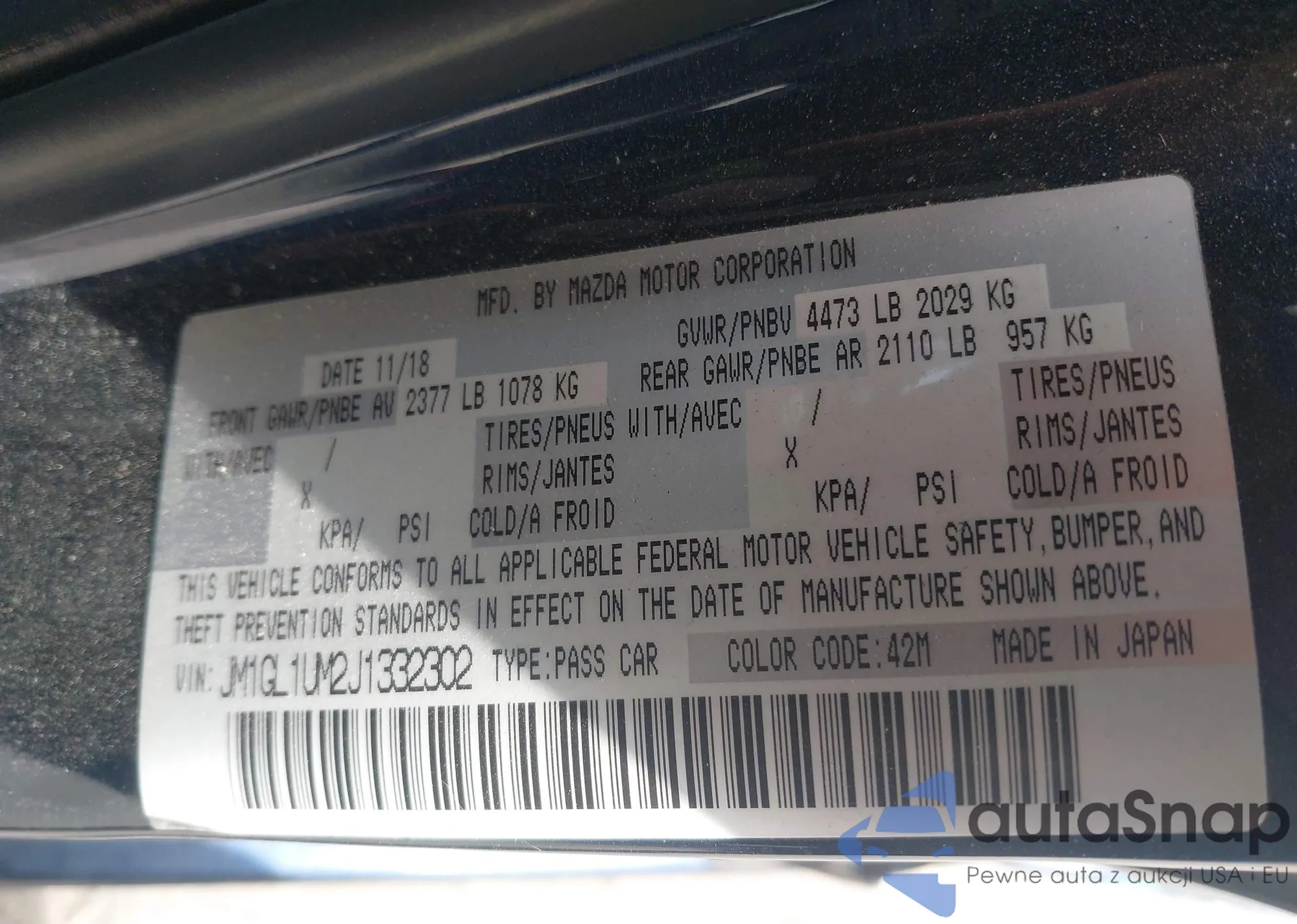 LOT: 42277446 VIN: JM1GL1UM2J1332302