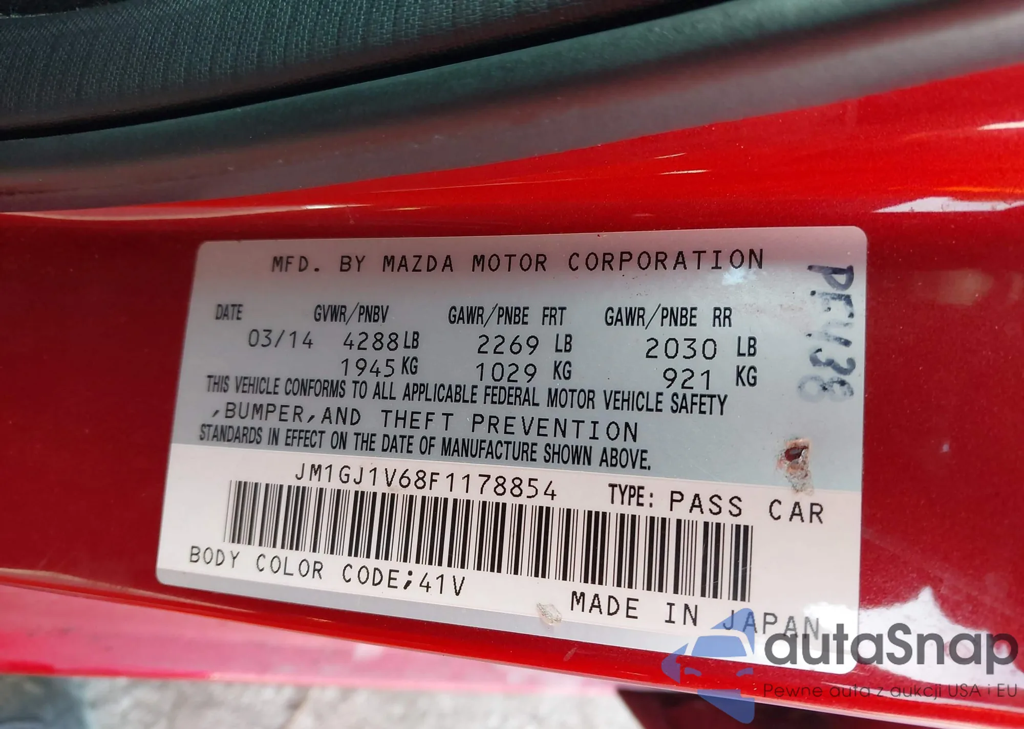 LOT: 43986194 VIN: JM1GJ1V68F1178854