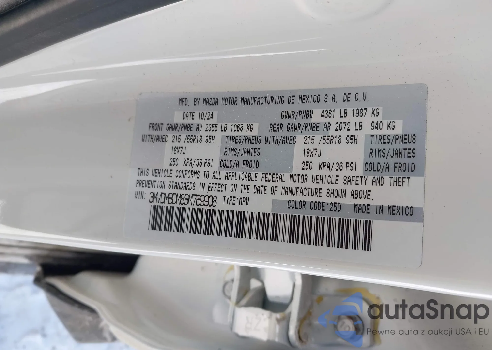 • VIN 3MVDMBXY7SM850171