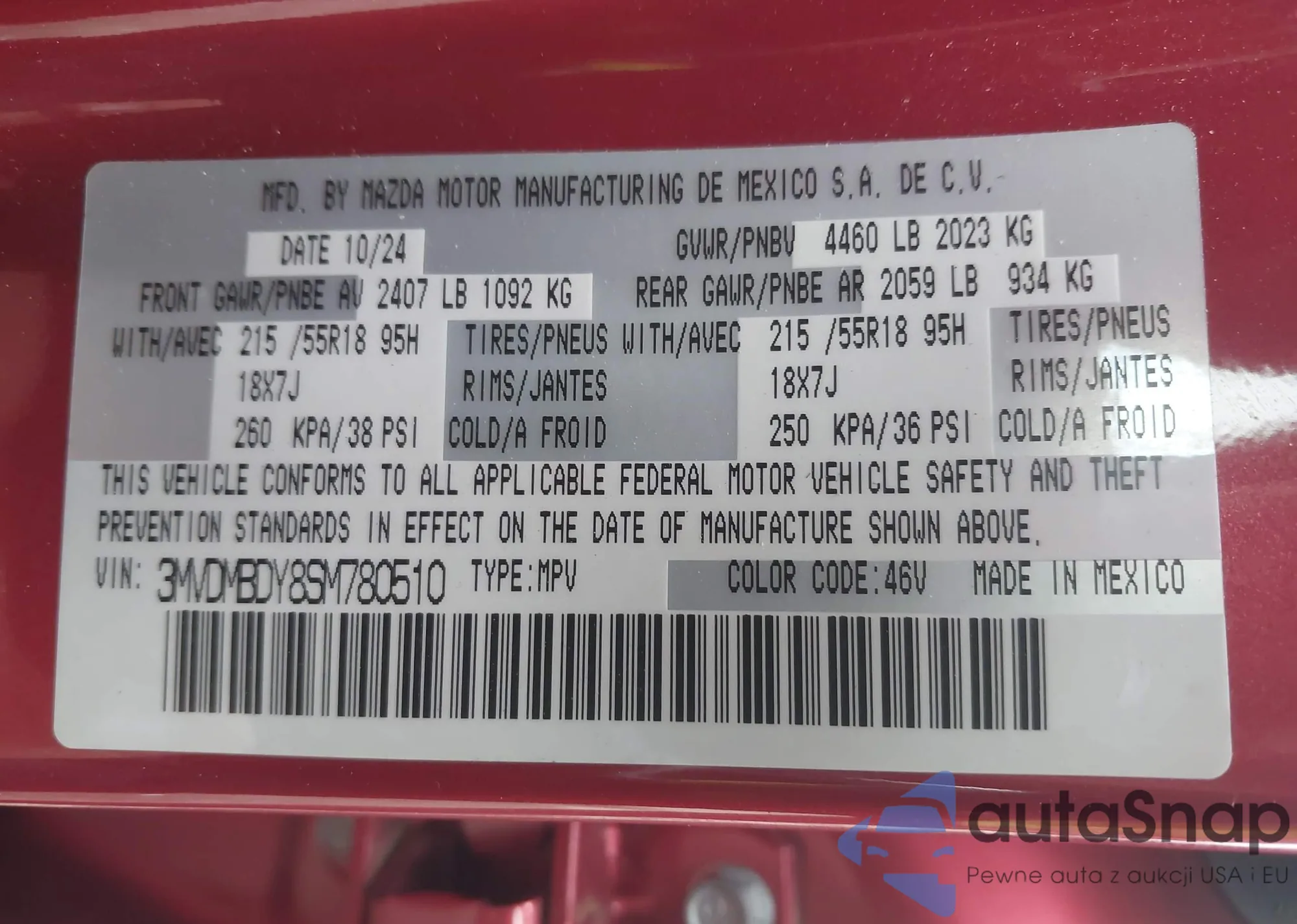 • VIN 3MVDMBDY8SM780510