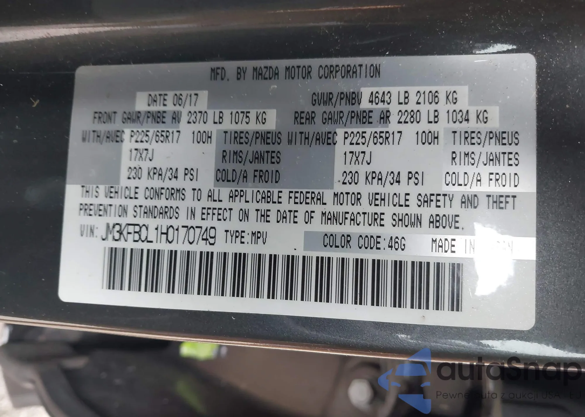 LOT: 44178565 VIN: JM3KFBCL1H0170749