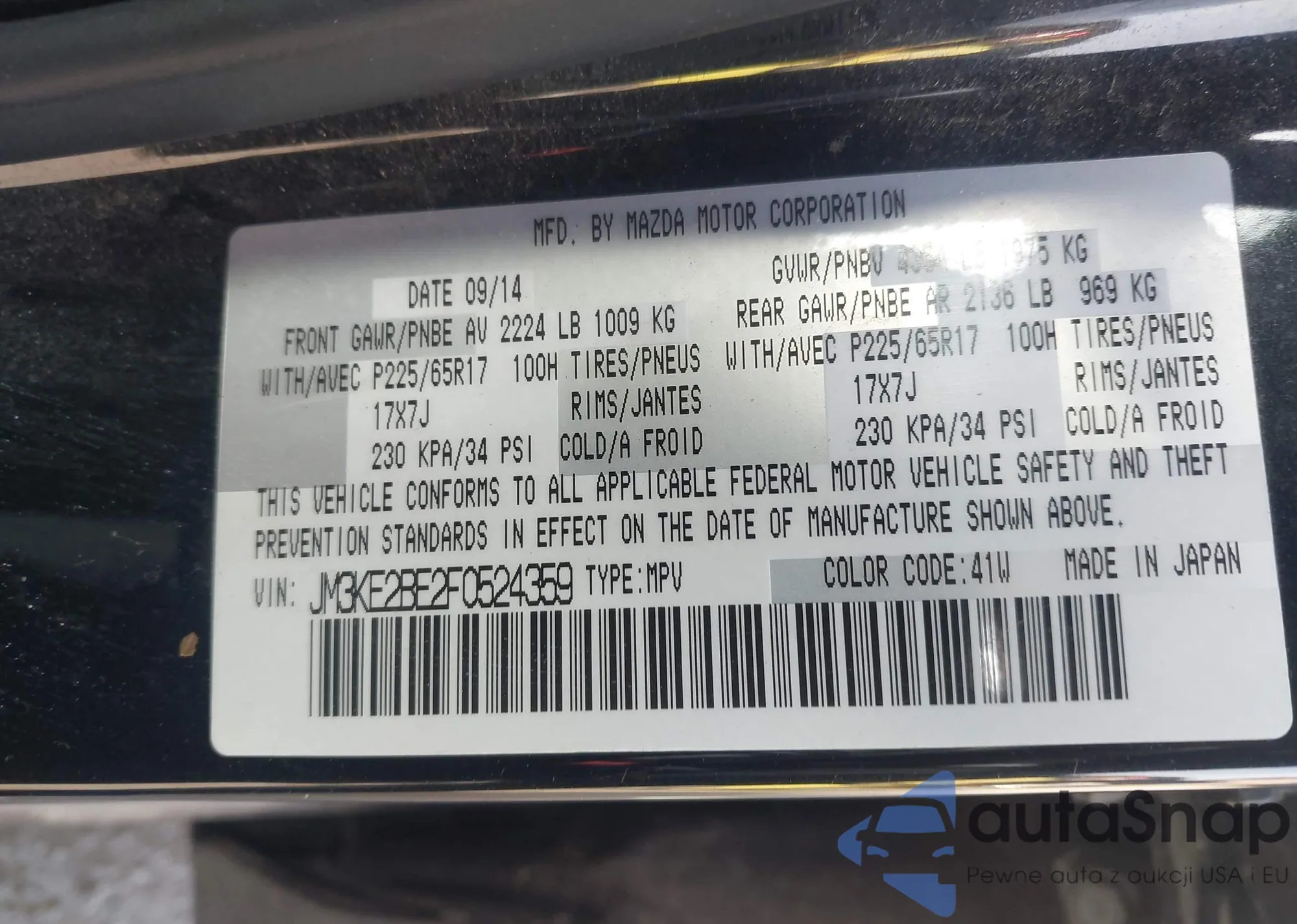 LOT: 44367021 VIN: JM3KE4DY4F0459842