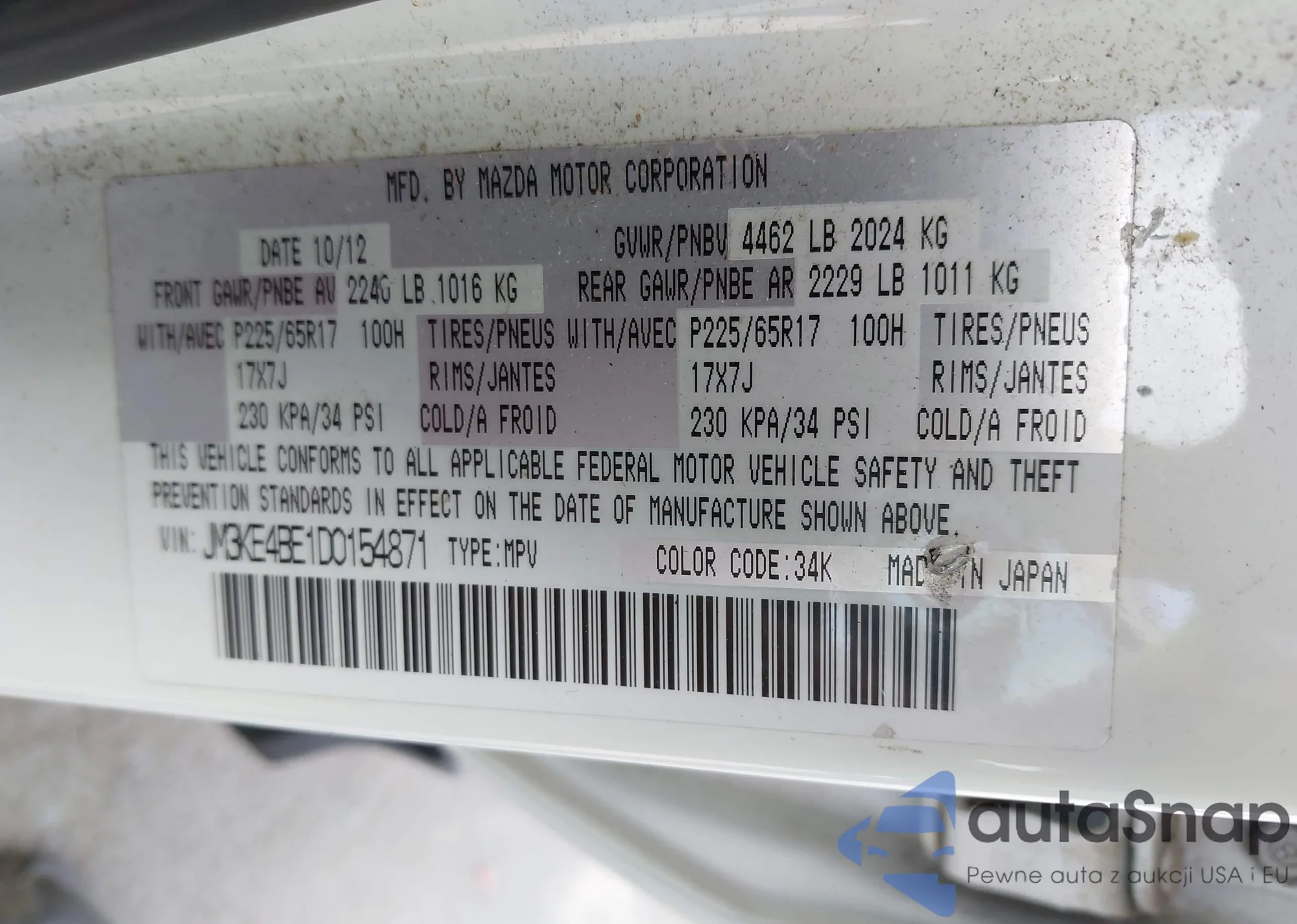 LOT: 44328348 VIN: JM3KE4BE1D0154871