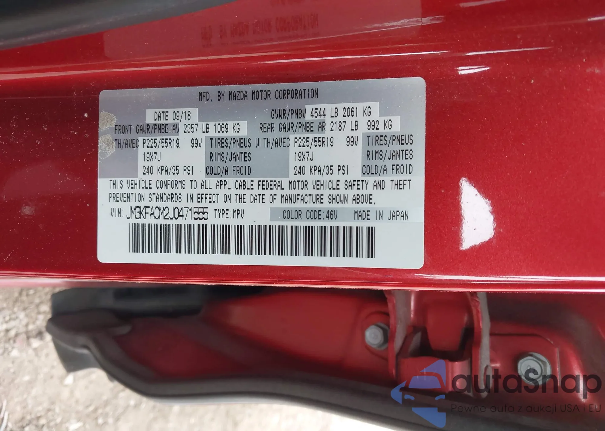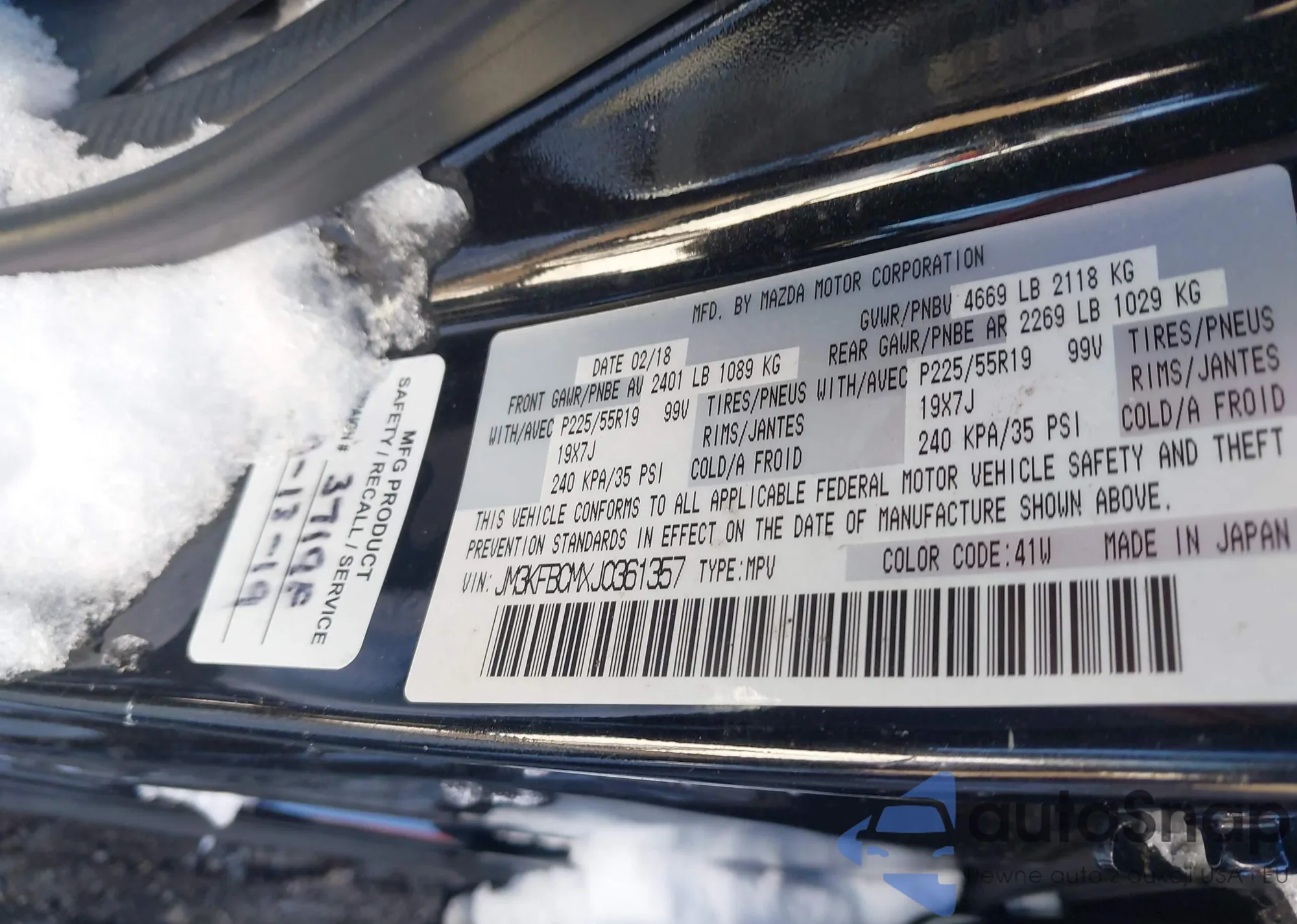 LOT: 44030823 VIN: JM3KFACM2J0471555