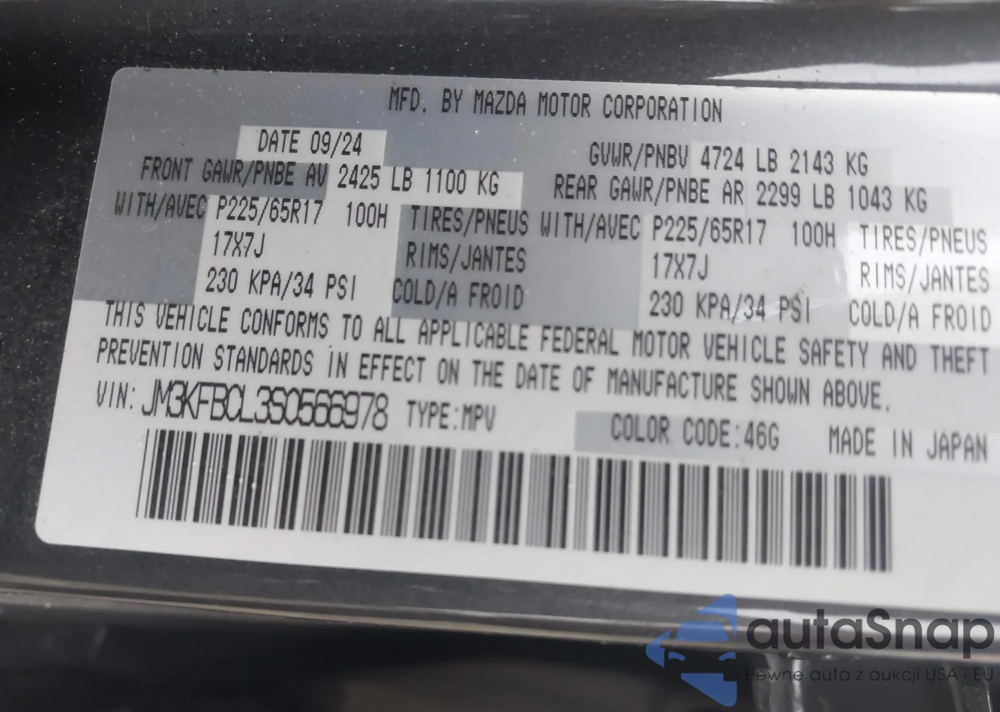 LOT: 44147233 VIN: JM3KFBDMXJ0461070