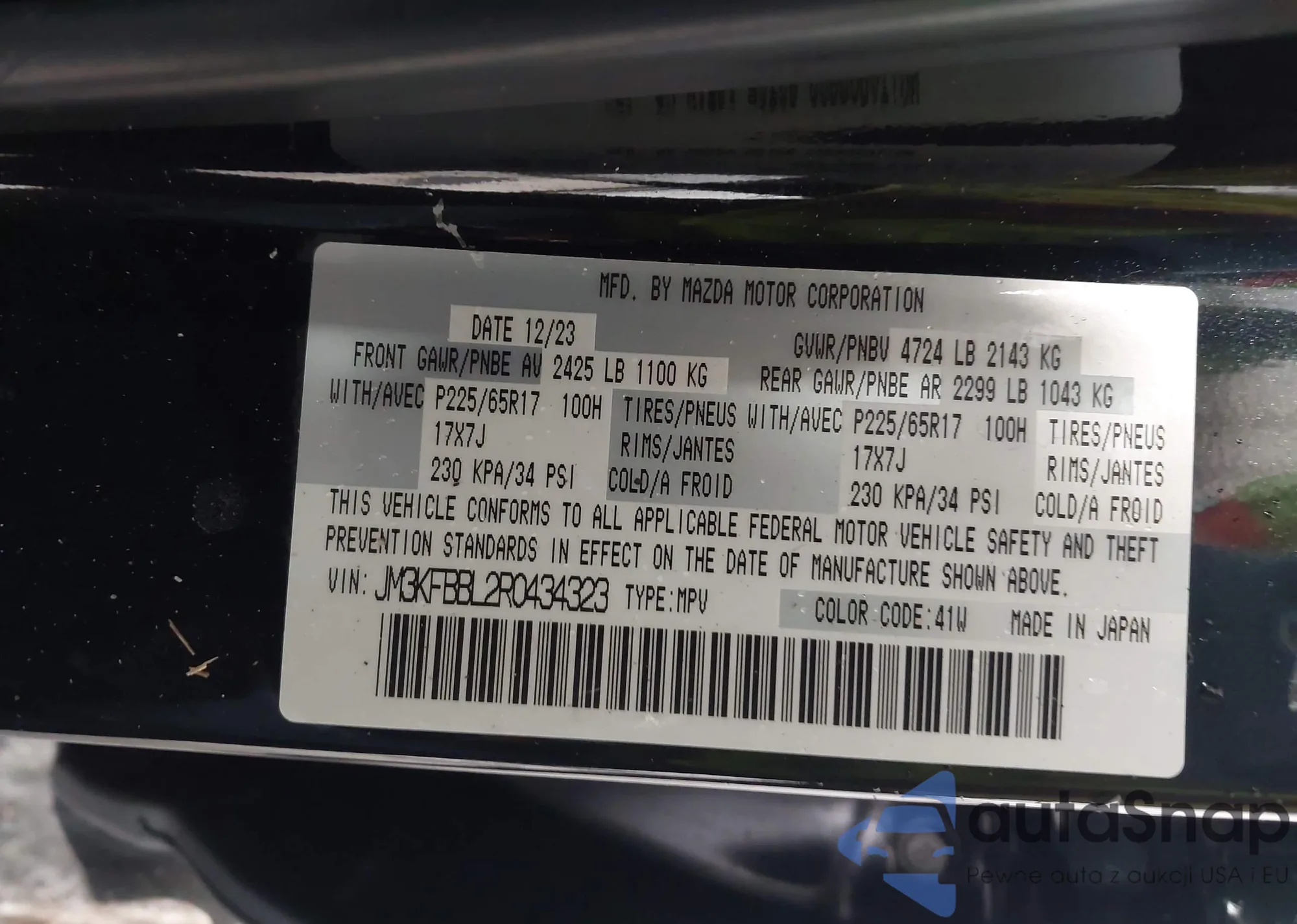 LOT: 44145468 VIN: JM3KFBBL2R0434323
