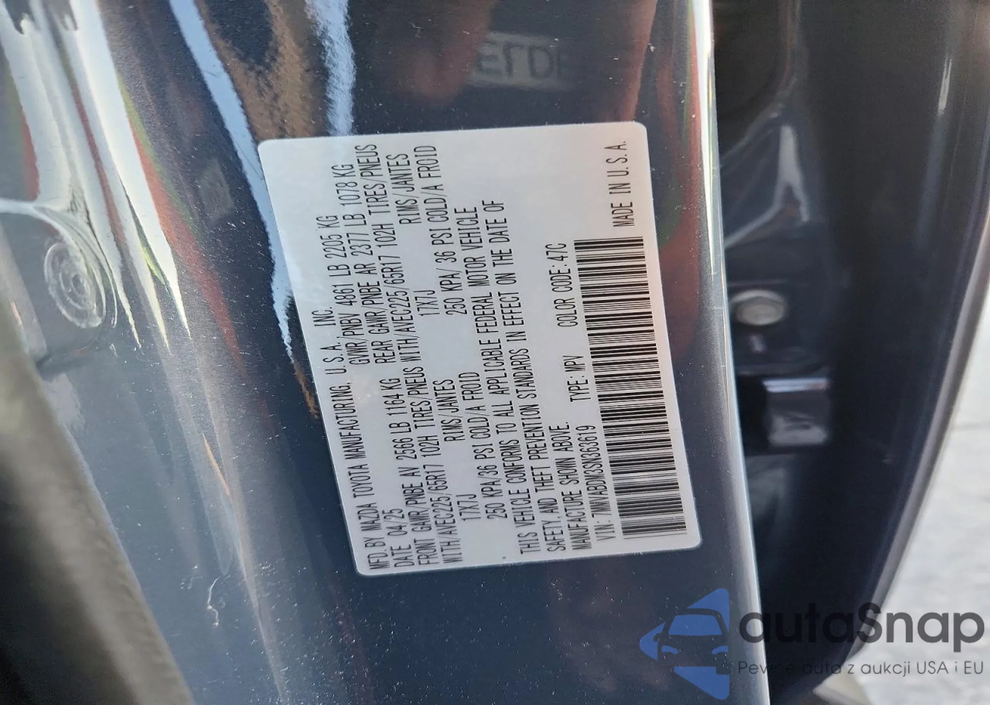 LOT: 76339085 VIN: 7MMVABDM3SN363619