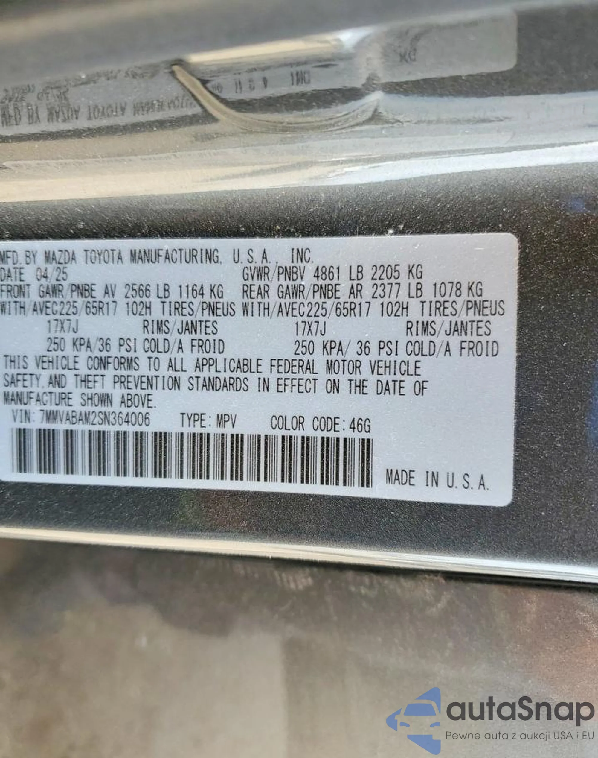• VIN 7MMVABAM2SN364006