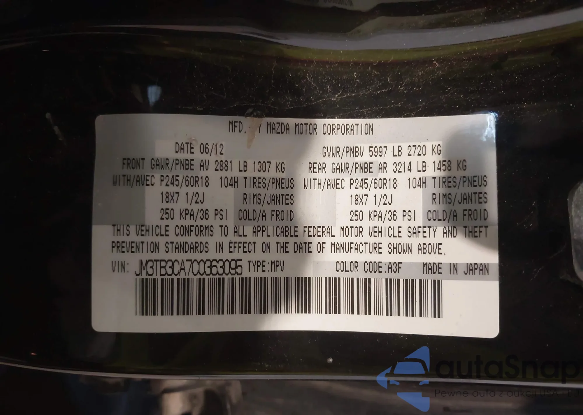 • VIN JM3TB3CA7C0363095