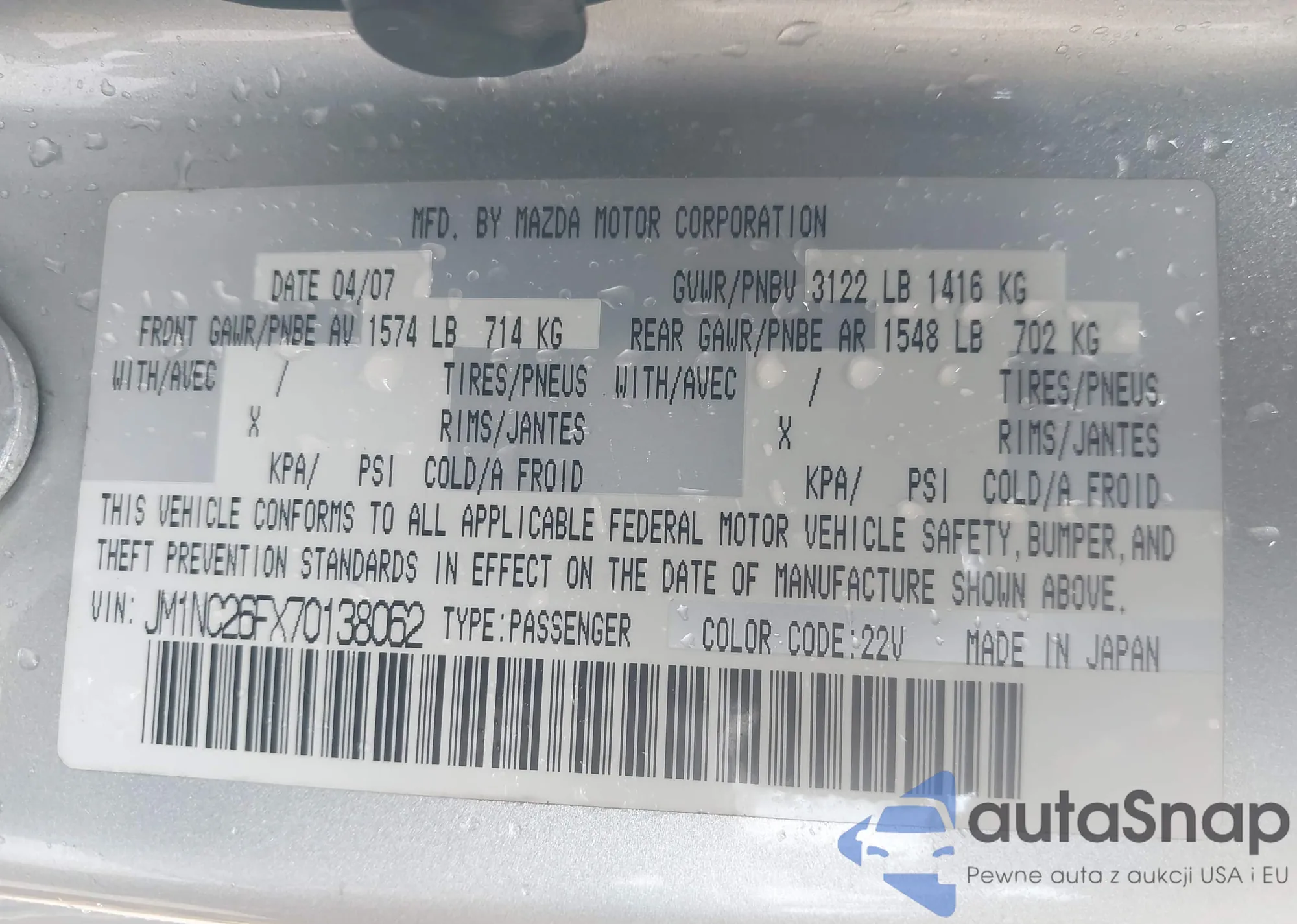 • VIN JM1NC26FX70138062