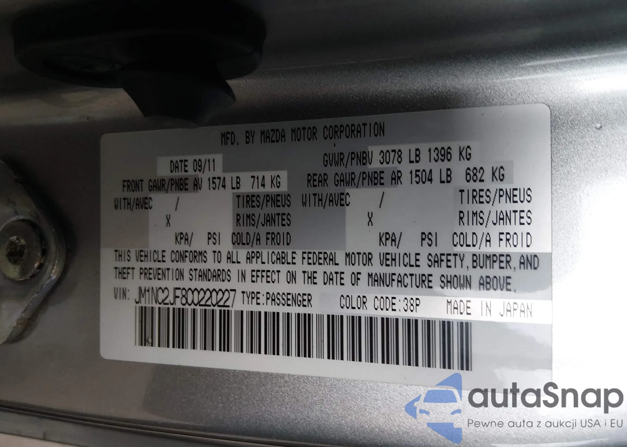 LOT: 44381878 VIN: JM1NC2PF9B0214006