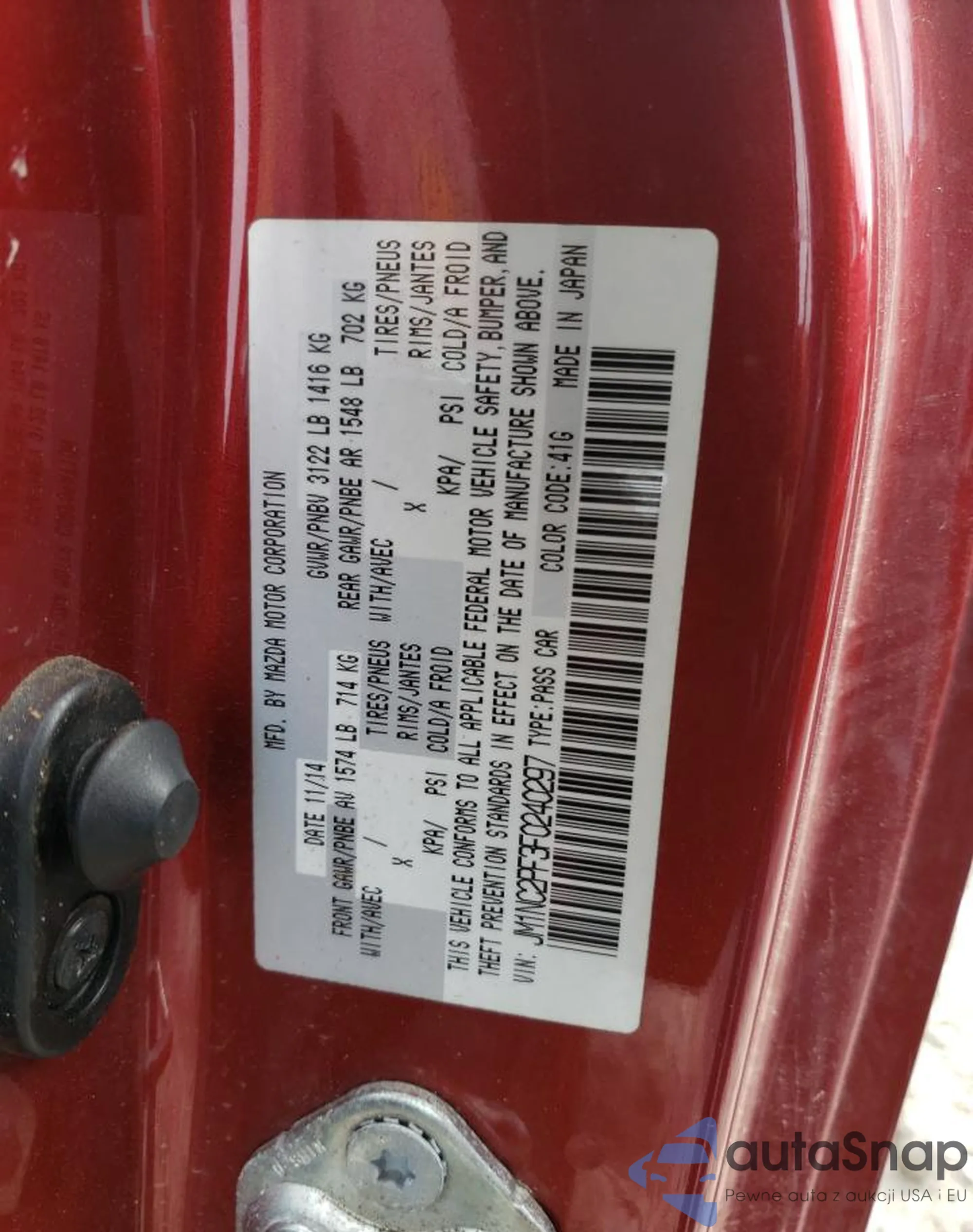 LOT: 45370963 VIN: JM1NC2PF3F0240297