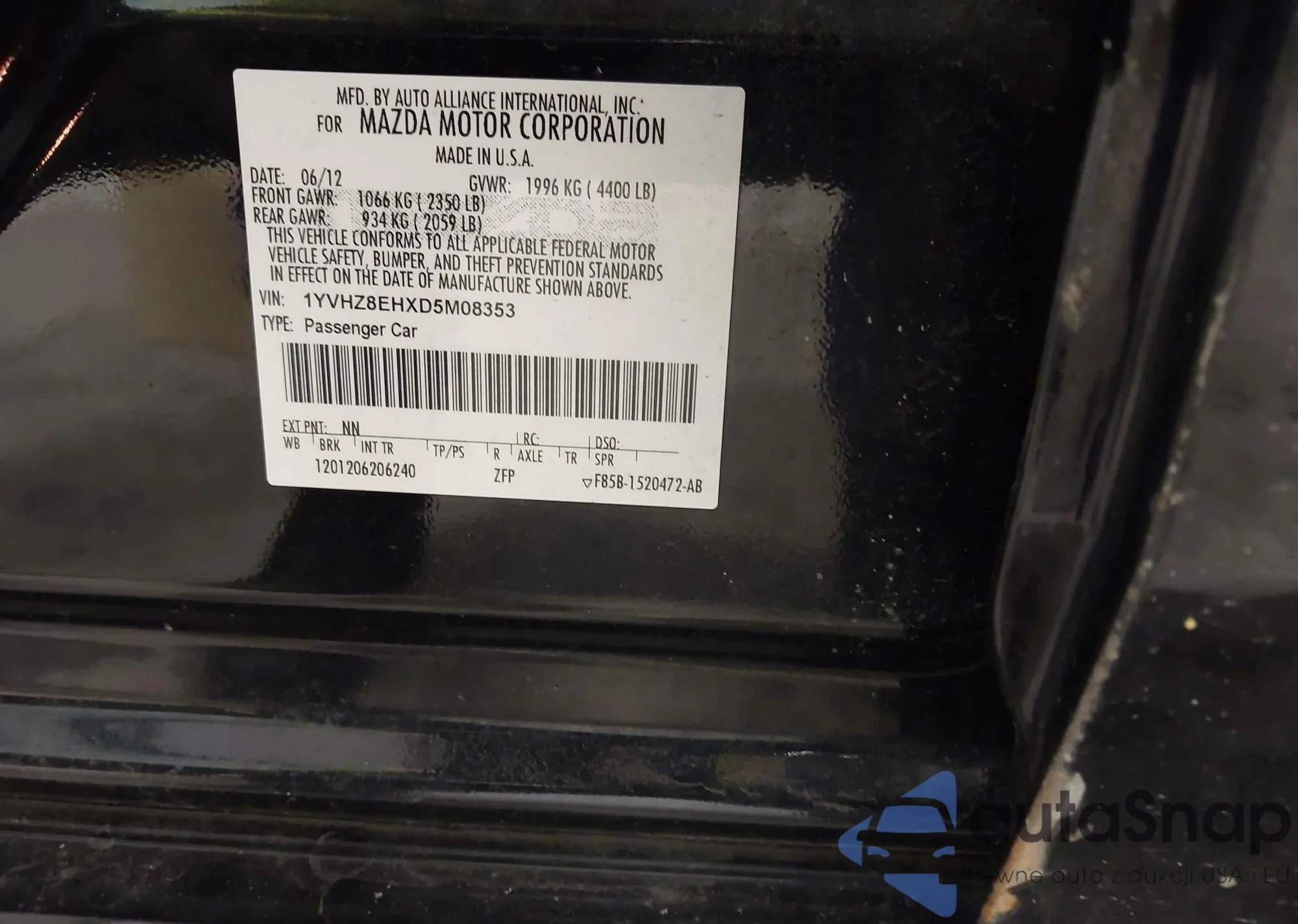 LOT: 73125725 VIN: JM3KFACM6L0856815