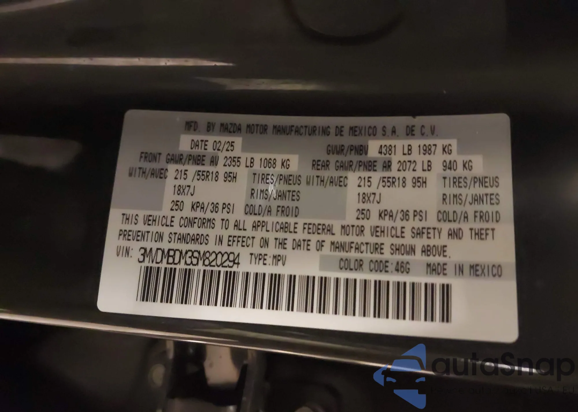 • VIN 3MVDMBDM3SM820294