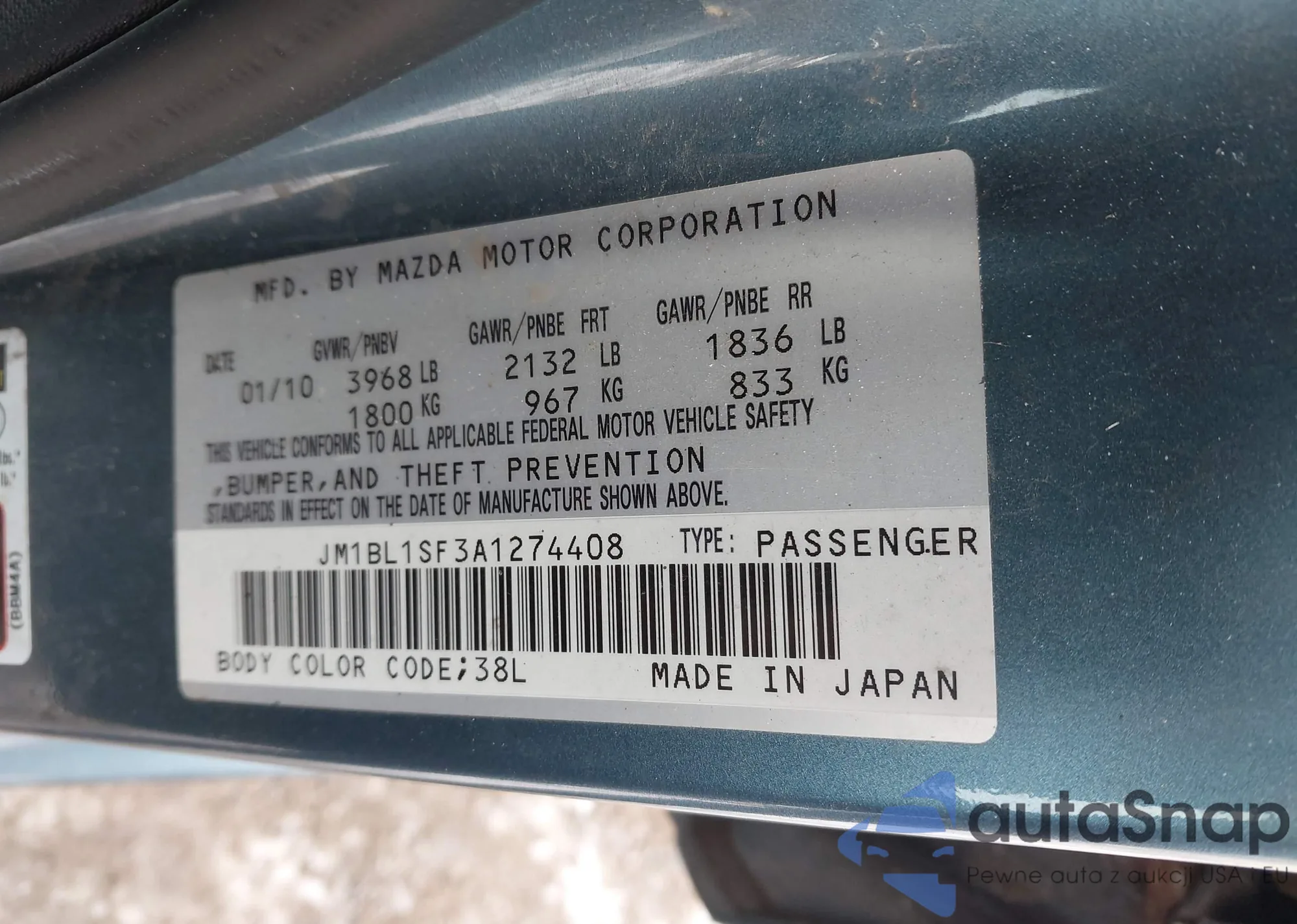 • VIN JM1BL1SF3A1274408