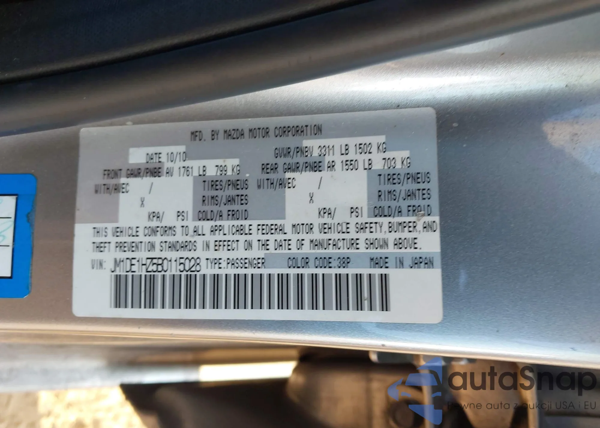 LOT: 44343199 VIN: JM1DE1HZ5B0115028