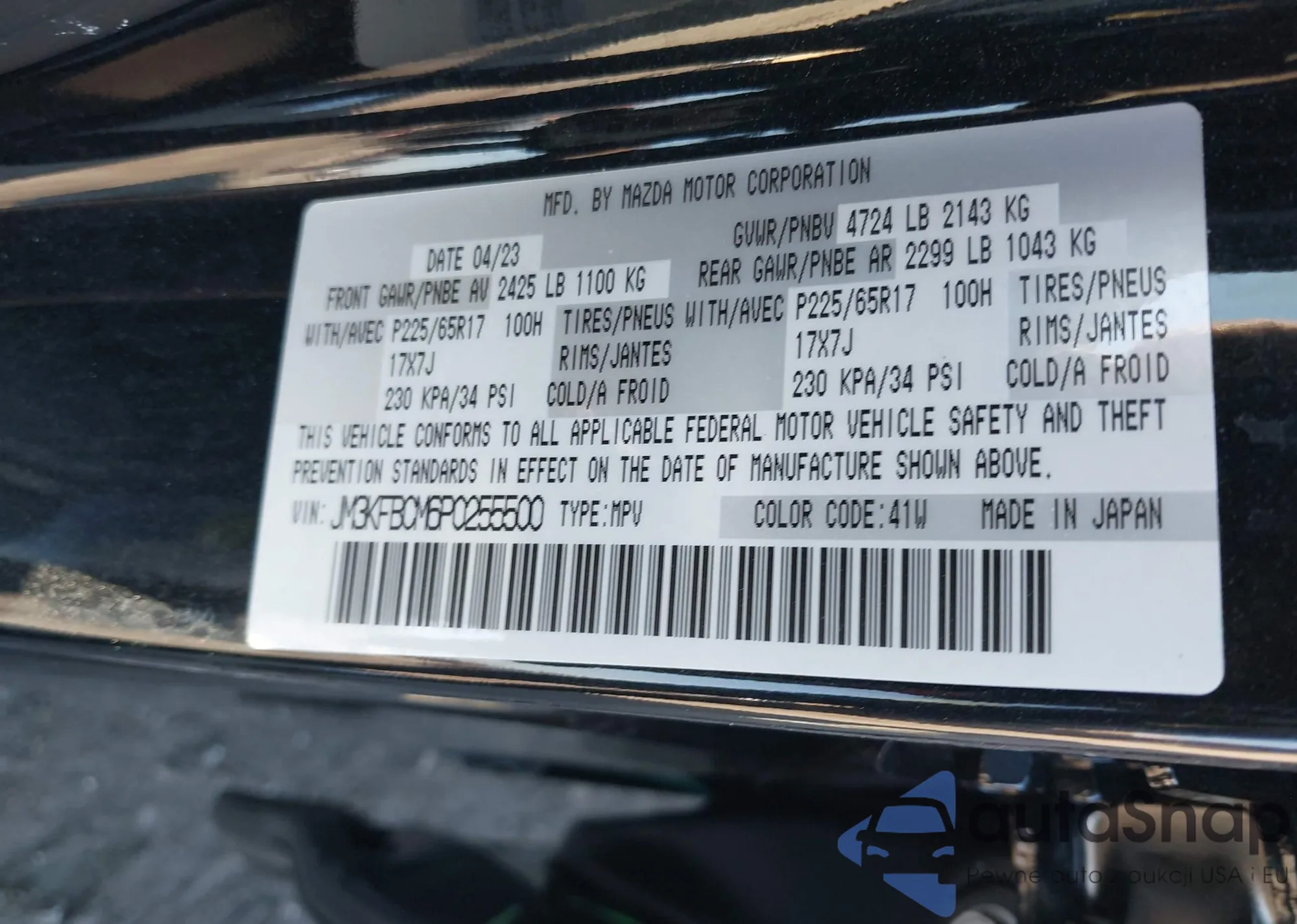 • VIN JM3KFBCM6P0255500