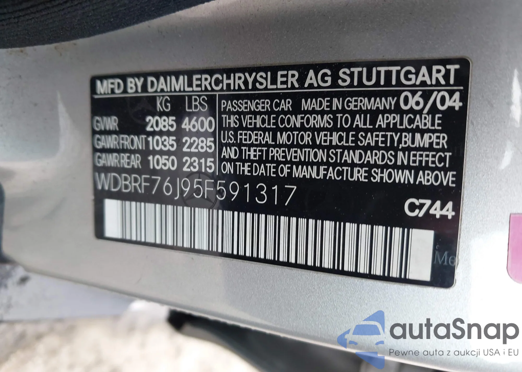 • VIN WDBRF76J95F591317