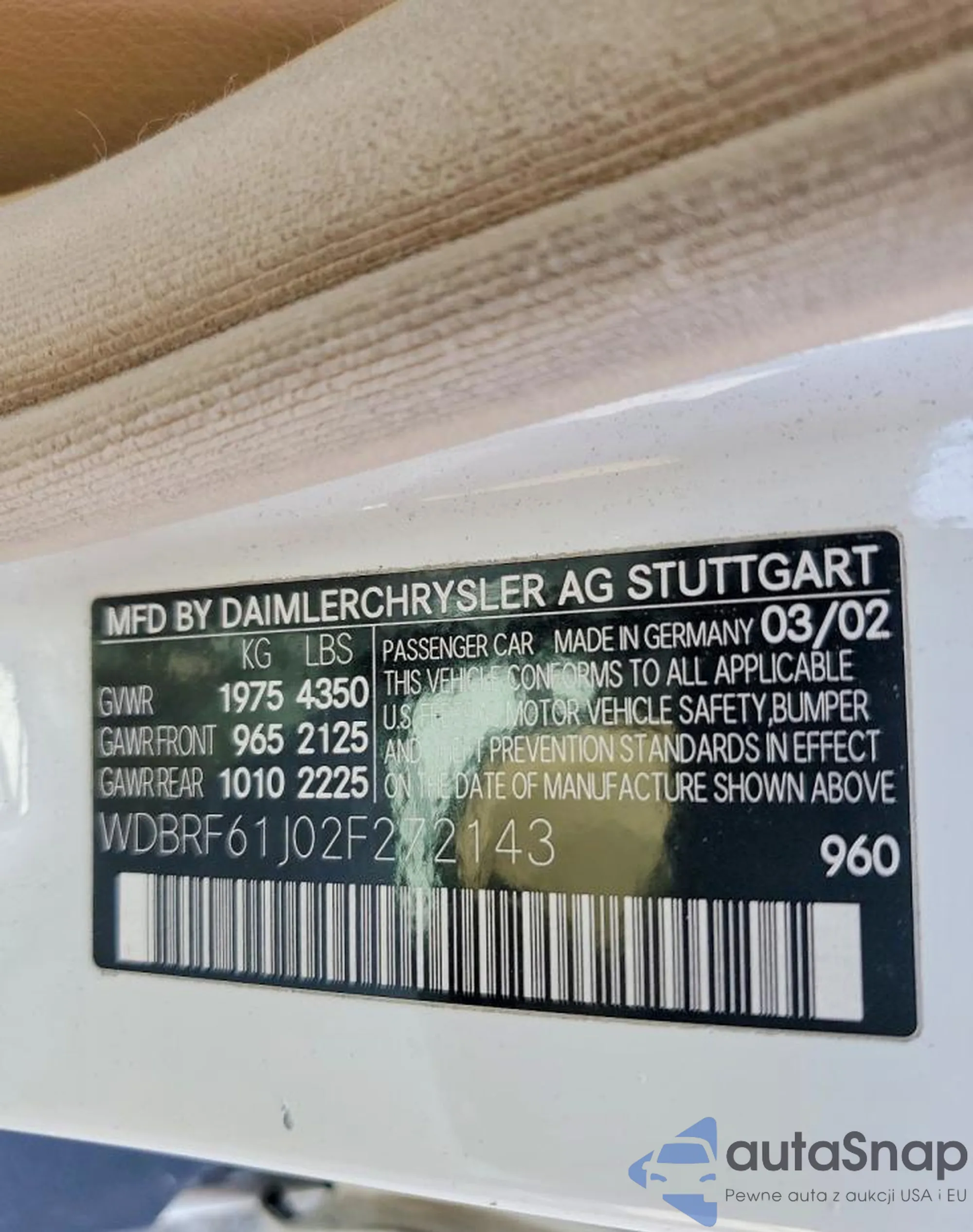 • VIN WDBRF61J02F272143