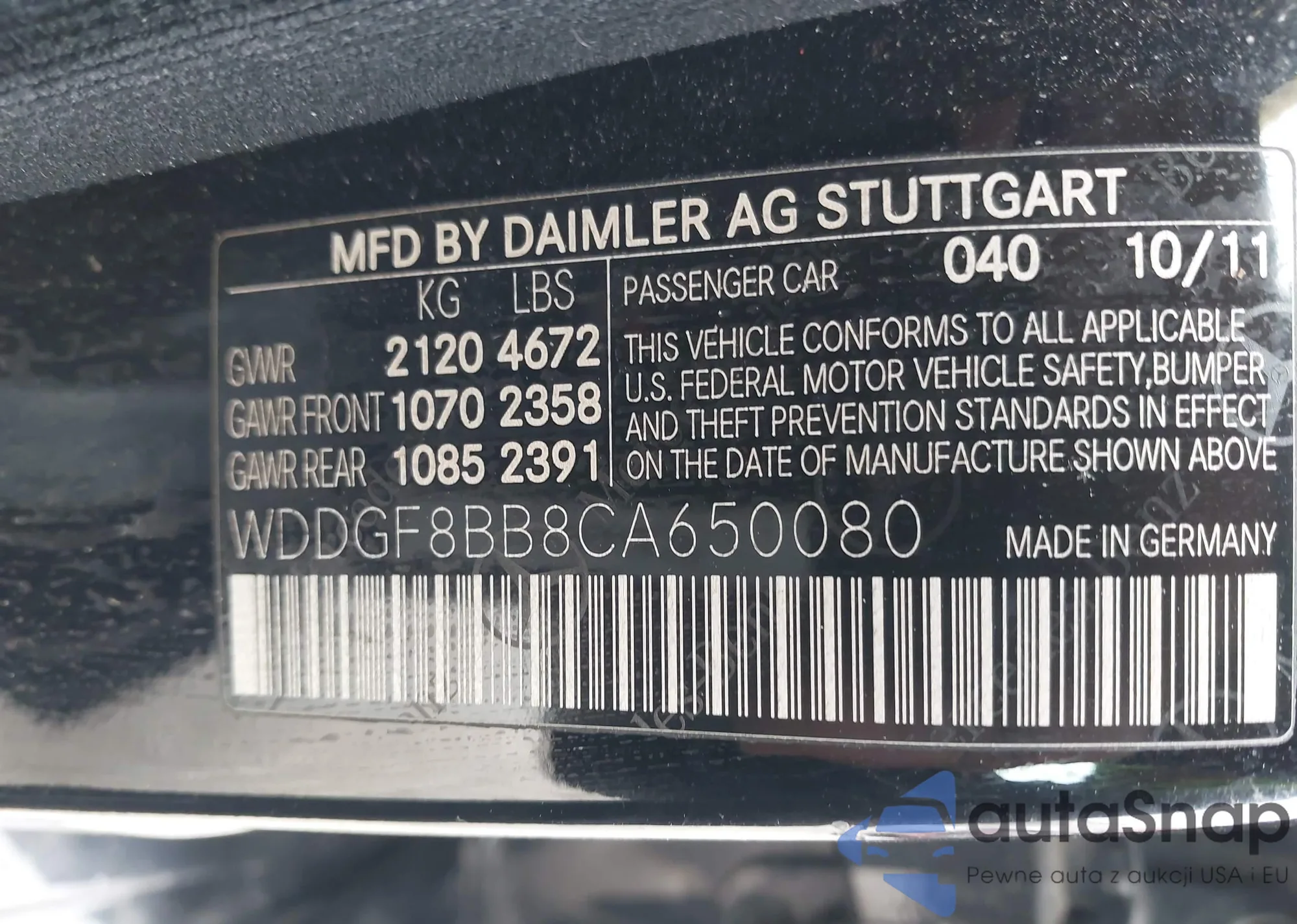 • VIN WDDGF8BB8CA650080