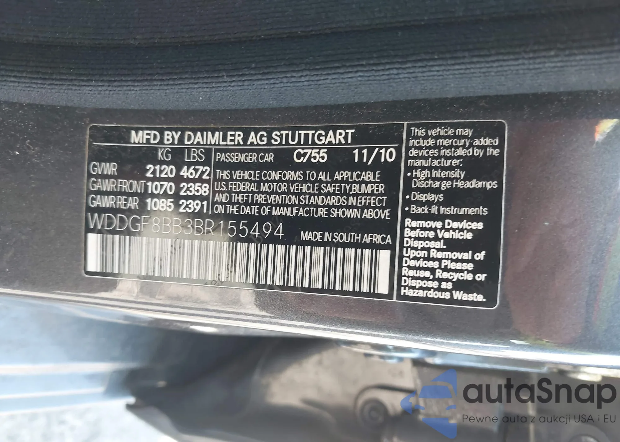 LOT: 44337981 VIN: WDDGF8BB3BR155494