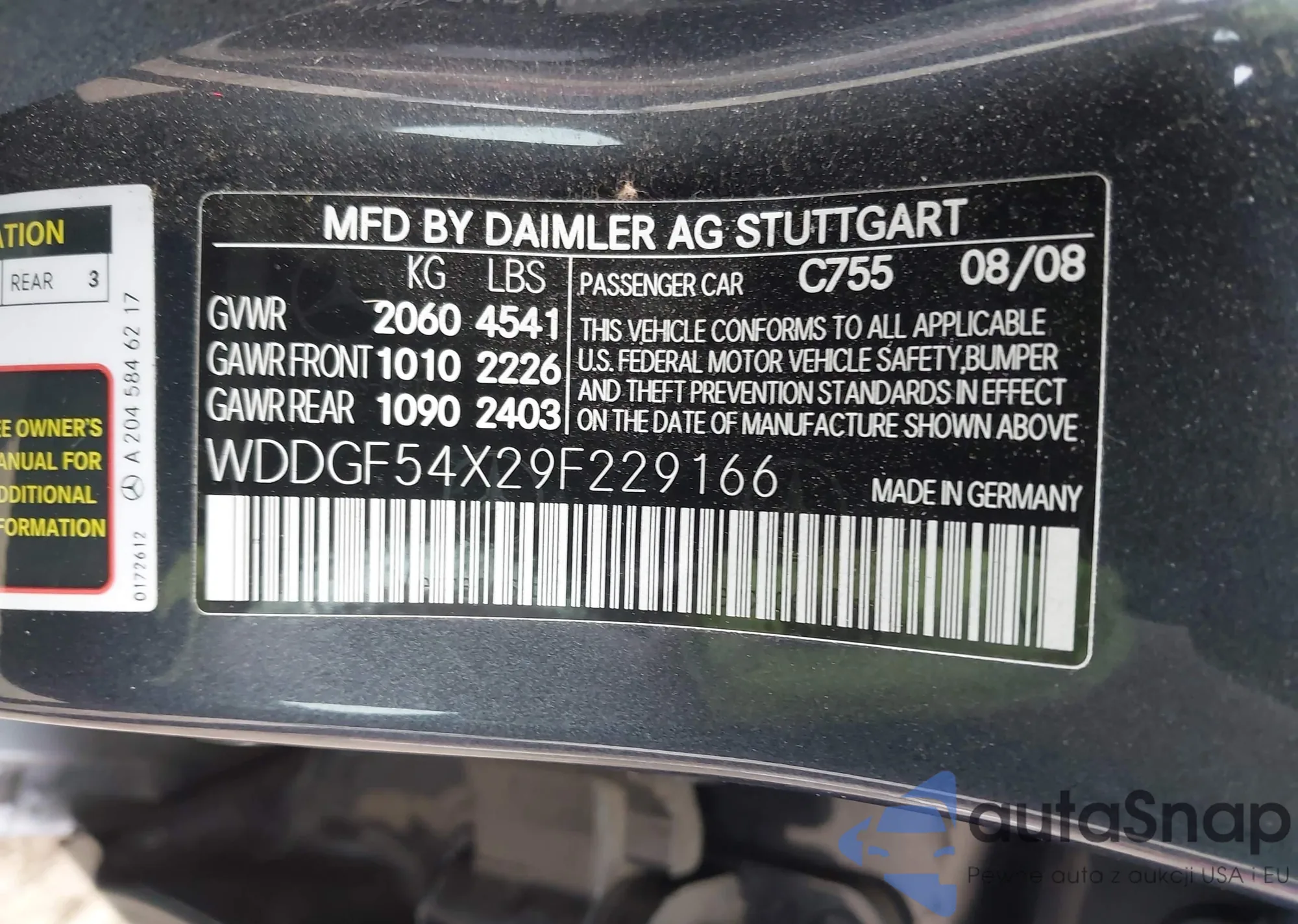 LOT: 44363689 VIN: WDDGF54X29F229166