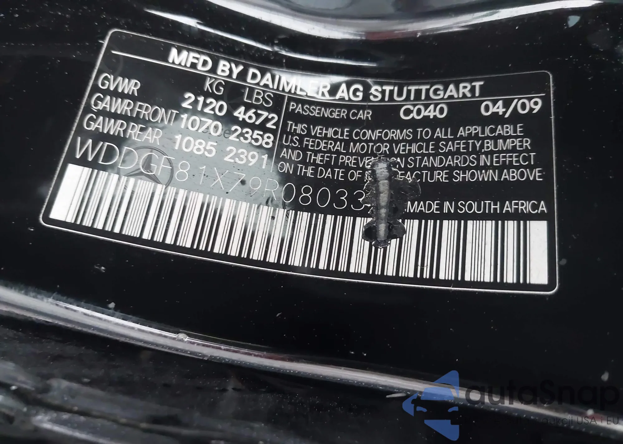 LOT: 44406247 VIN: WDDGF81X79R080337