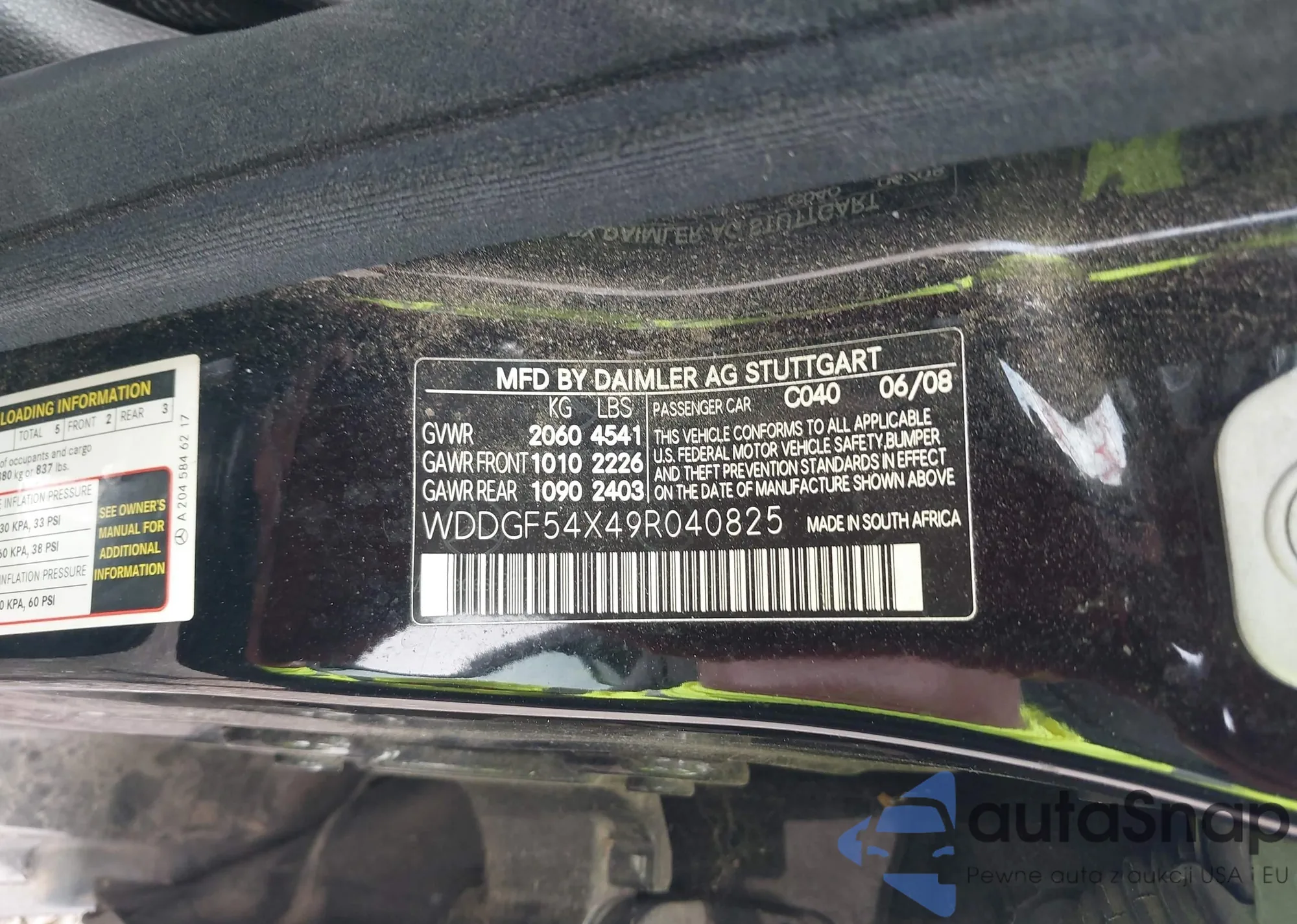 • VIN WDDGF54X49R040825