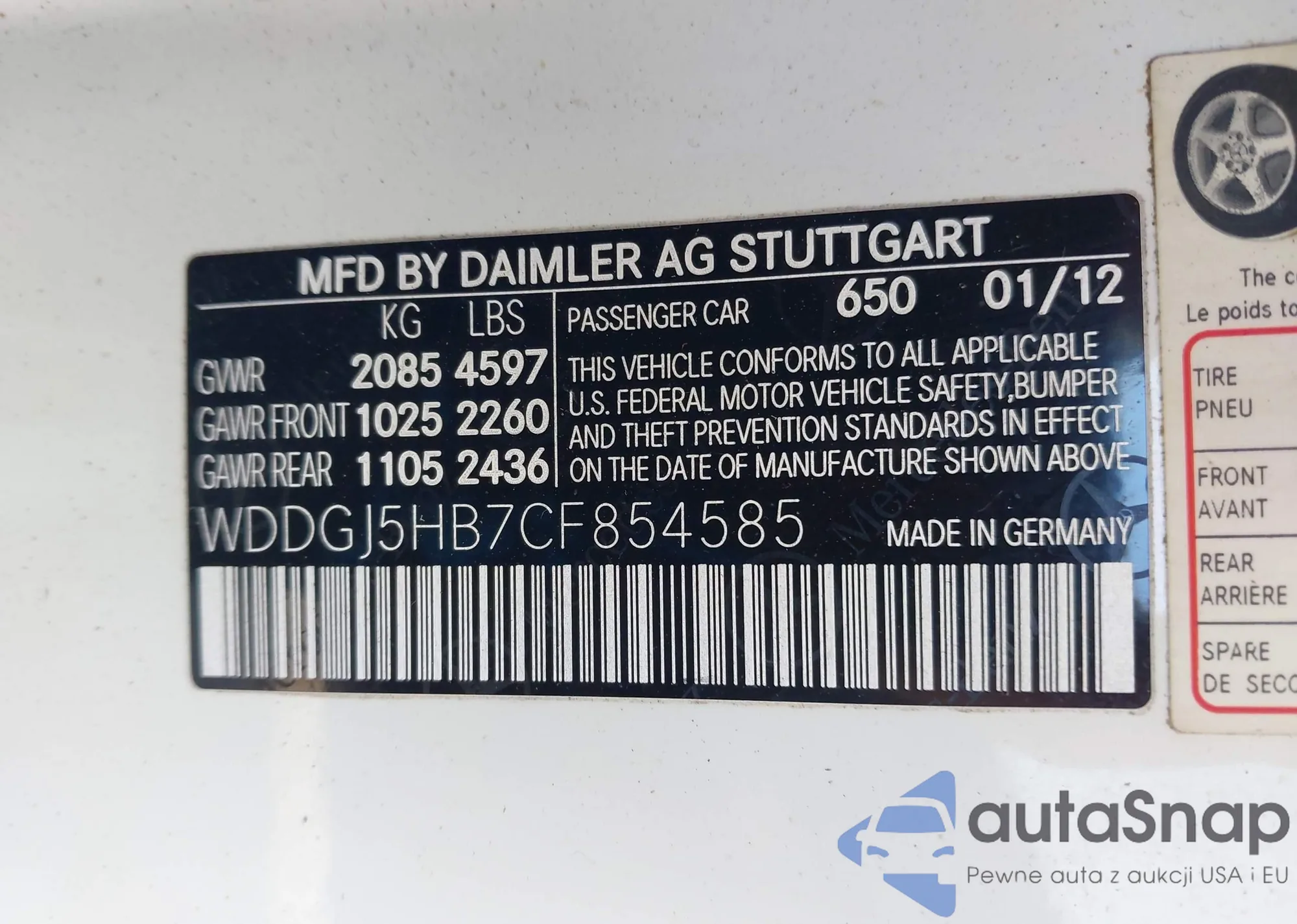 • VIN WDDGJ5HB7CF854585