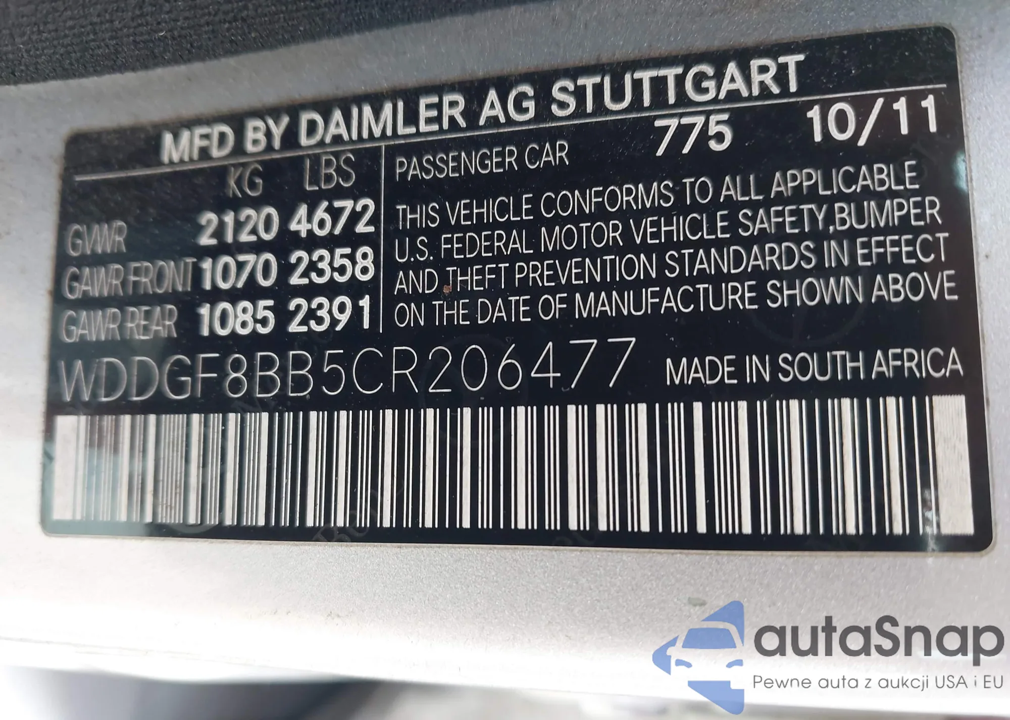• VIN WDDGF8BB5CR206477