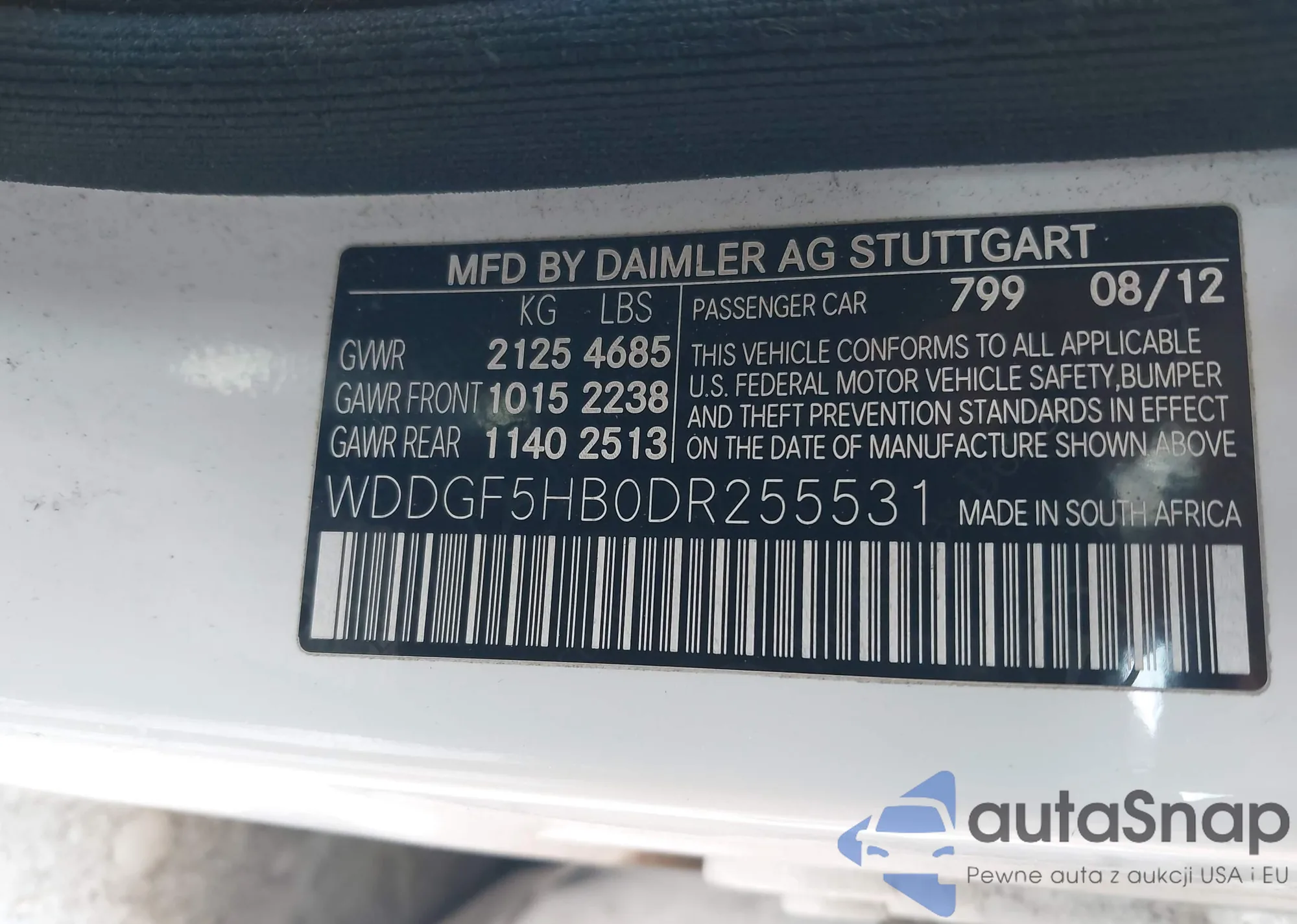 • VIN WDDGF8AB5DA836565