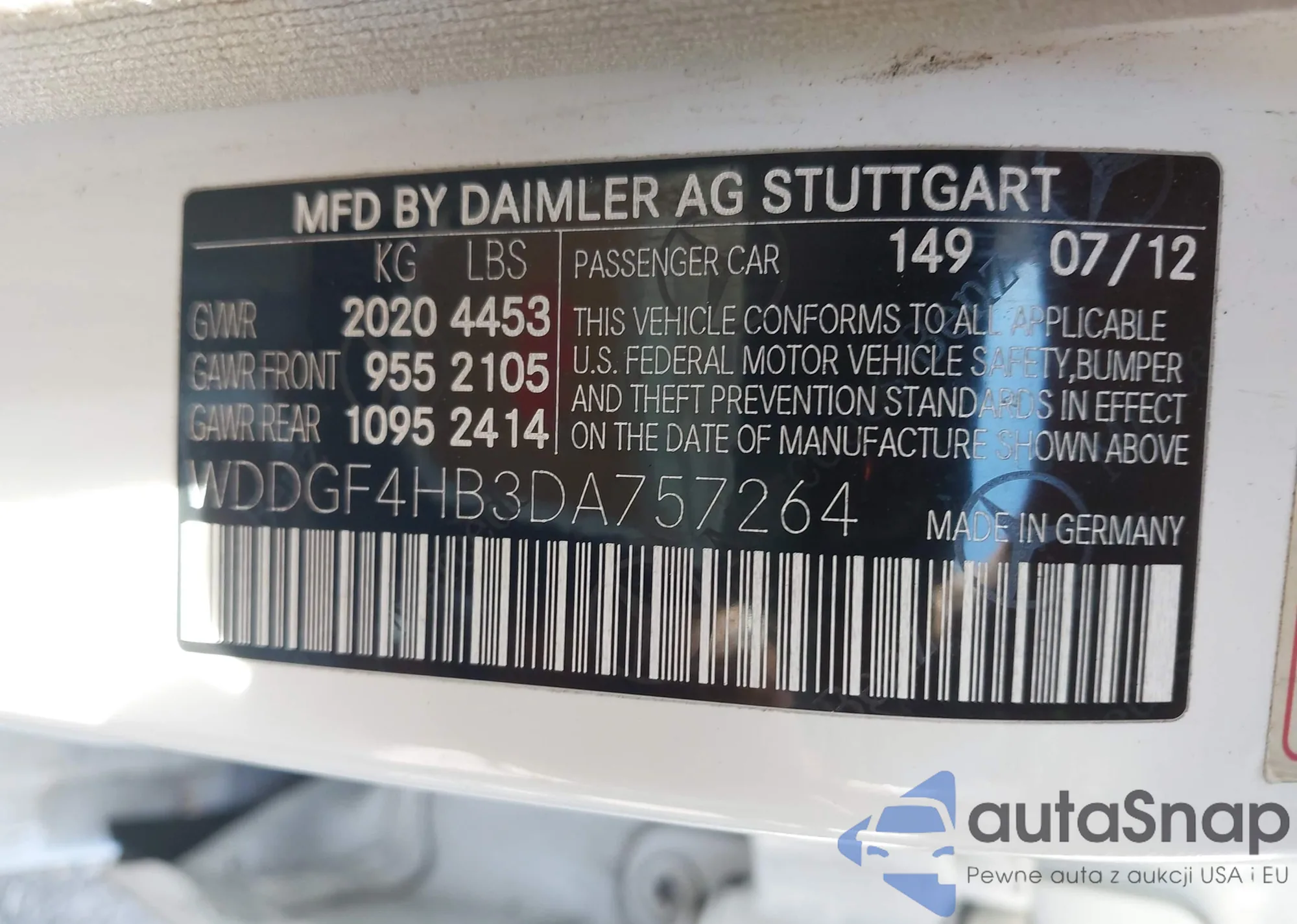 LOT: 44463943 VIN: WDDGF4HB3DA757264