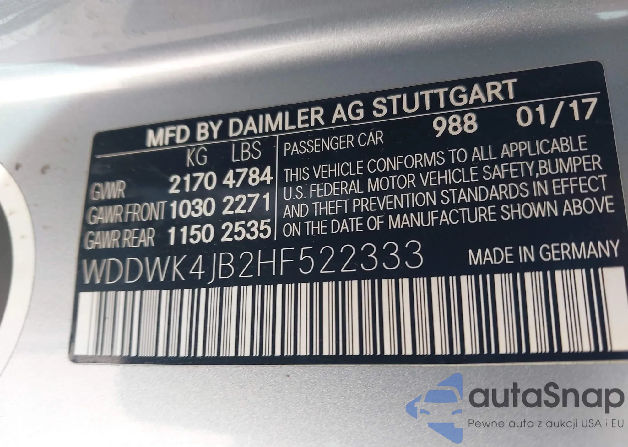 • VIN WDDWK4JB2HF522333