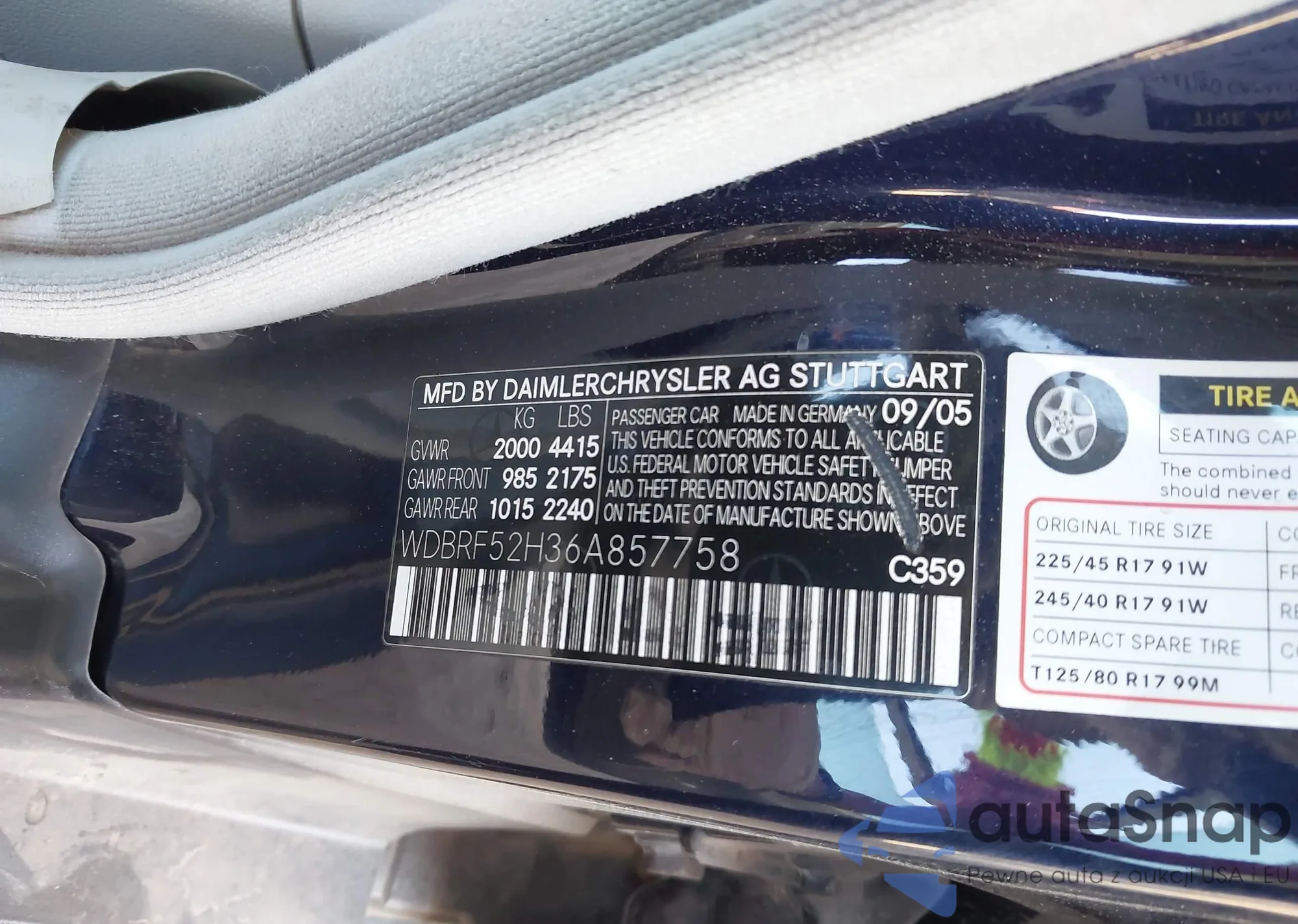 LOT: 44314869 VIN: WDBRF52H36A857758