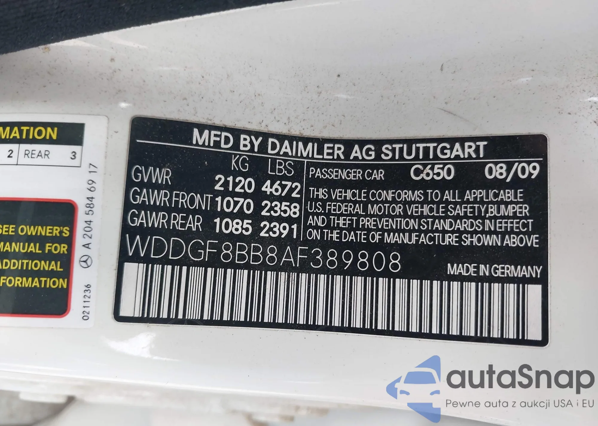 • VIN WDDGF5GB2BF639066
