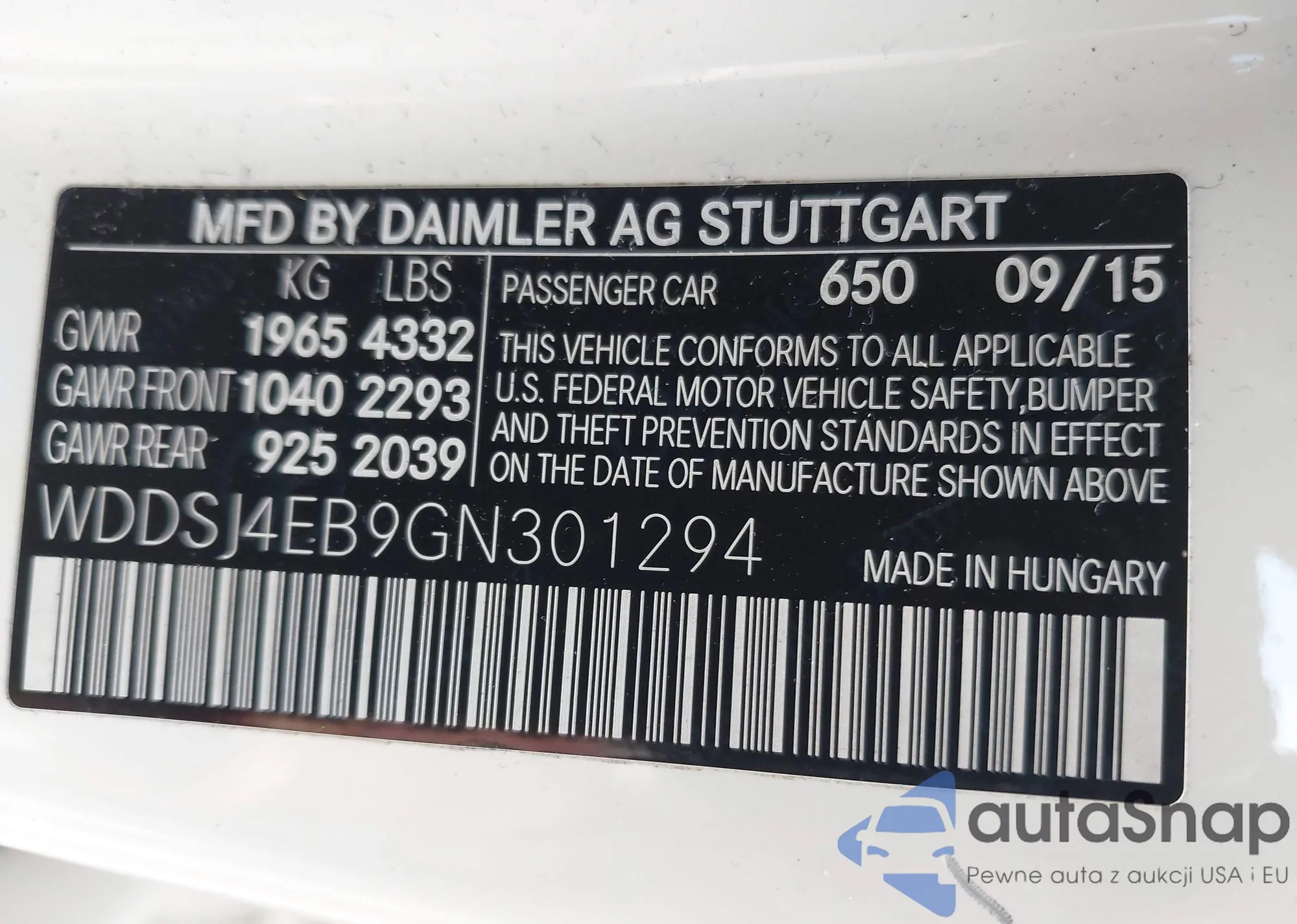 • VIN WDDSJ4EB9GN301294