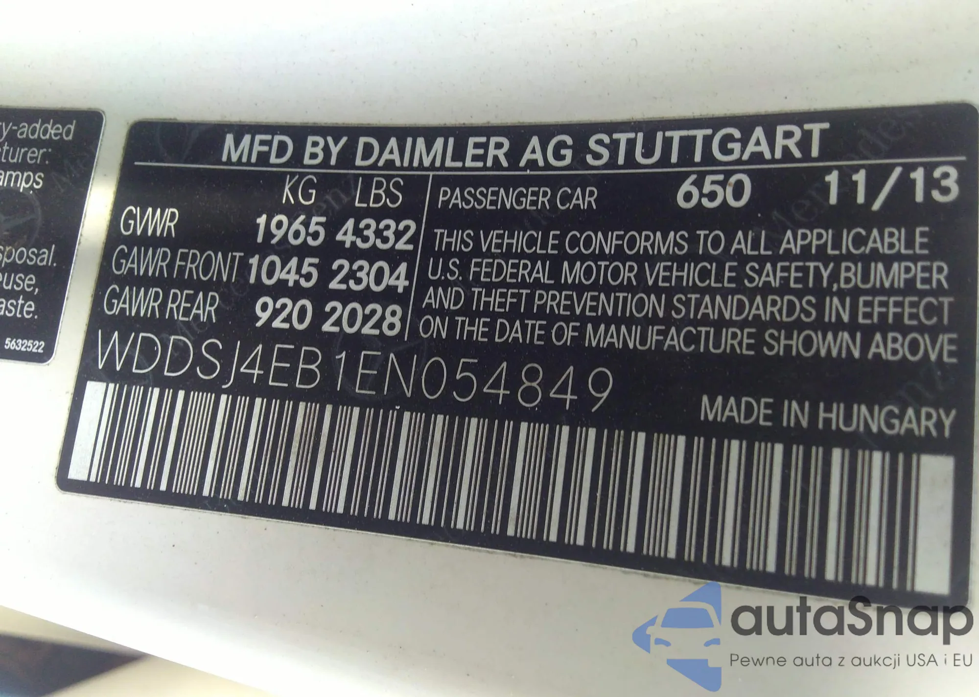 • VIN WDDSJ4EB1EN054849
