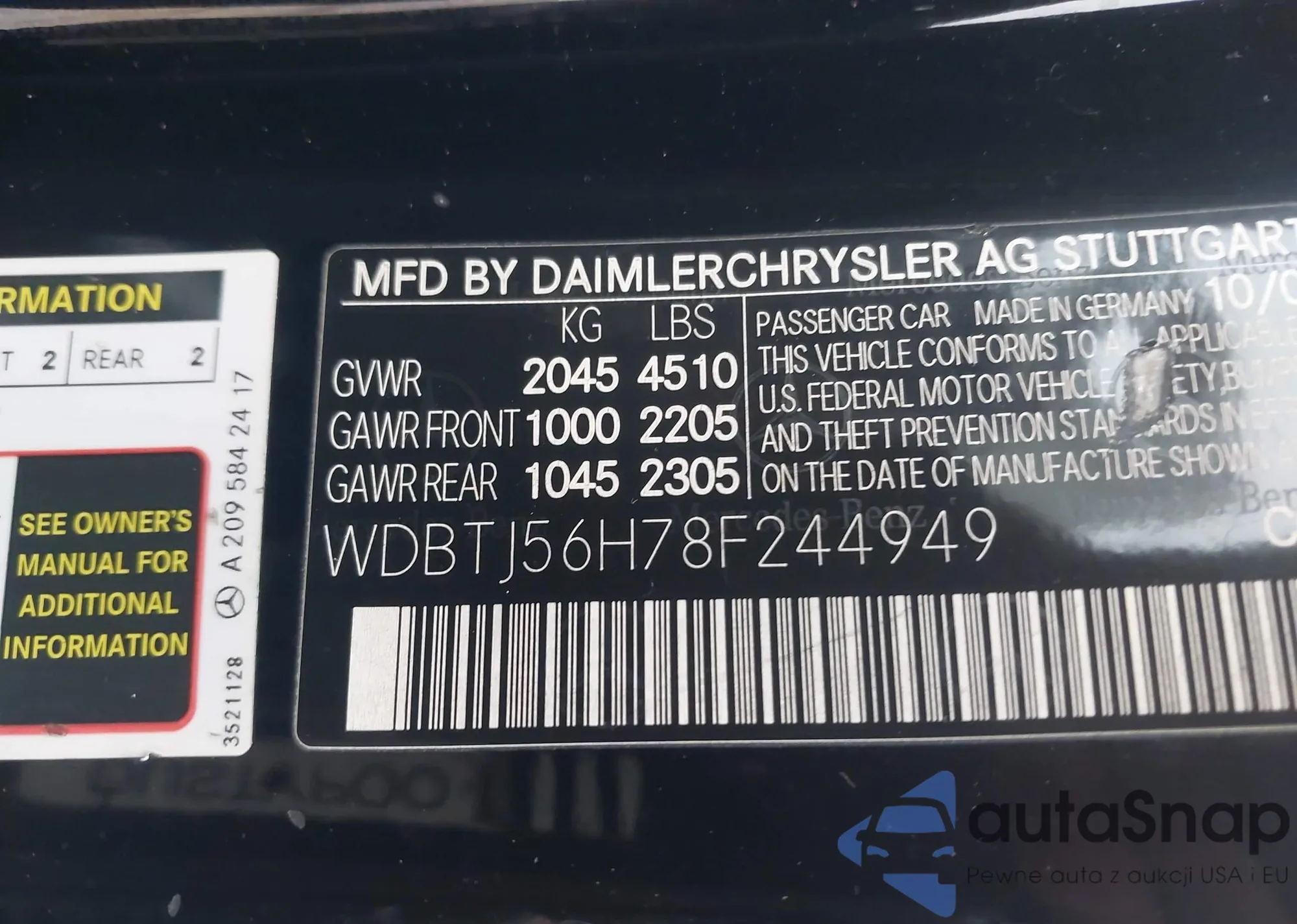 • VIN WDBTJ56H78F244949