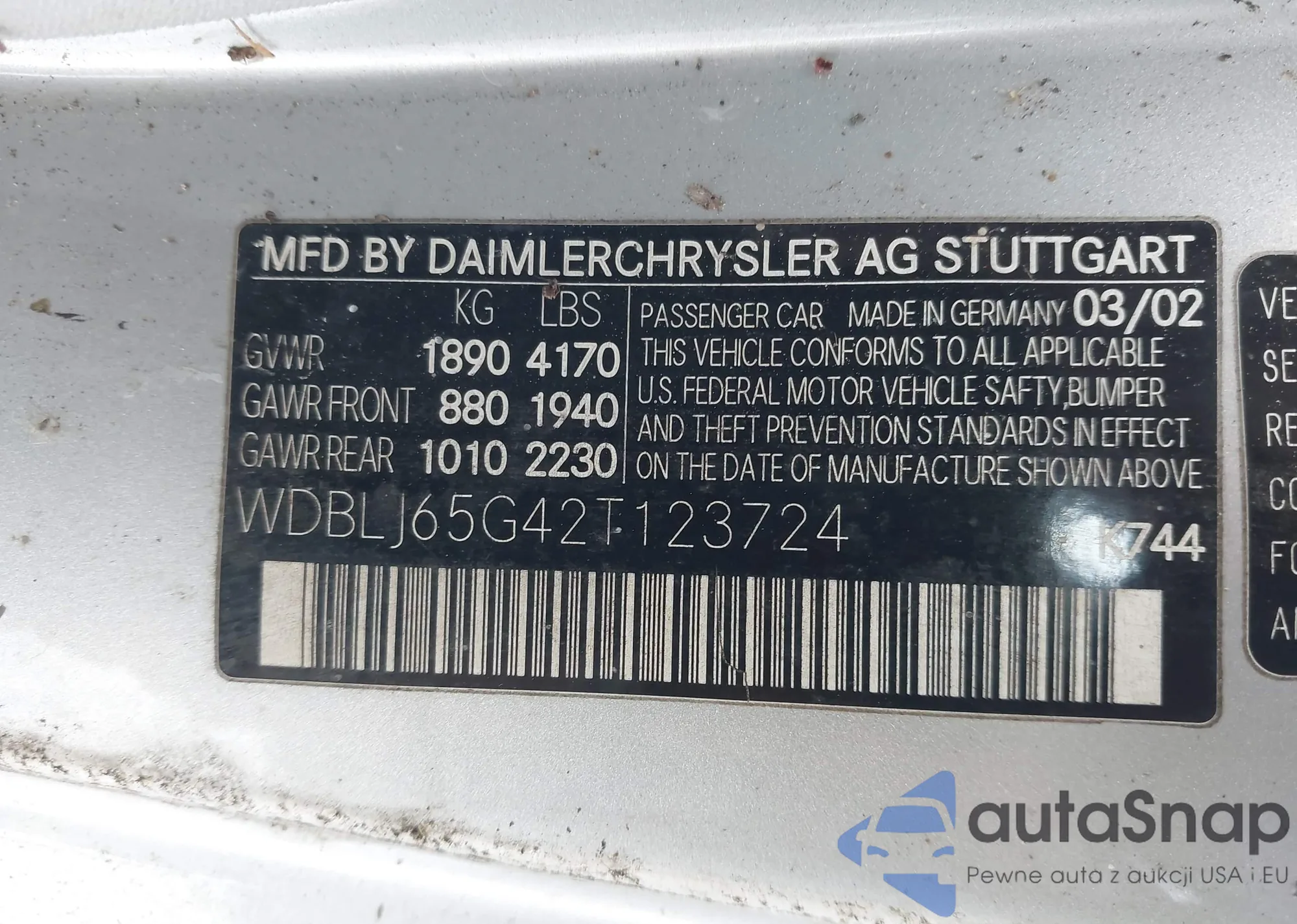 • VIN WDBLJ65G42T123724