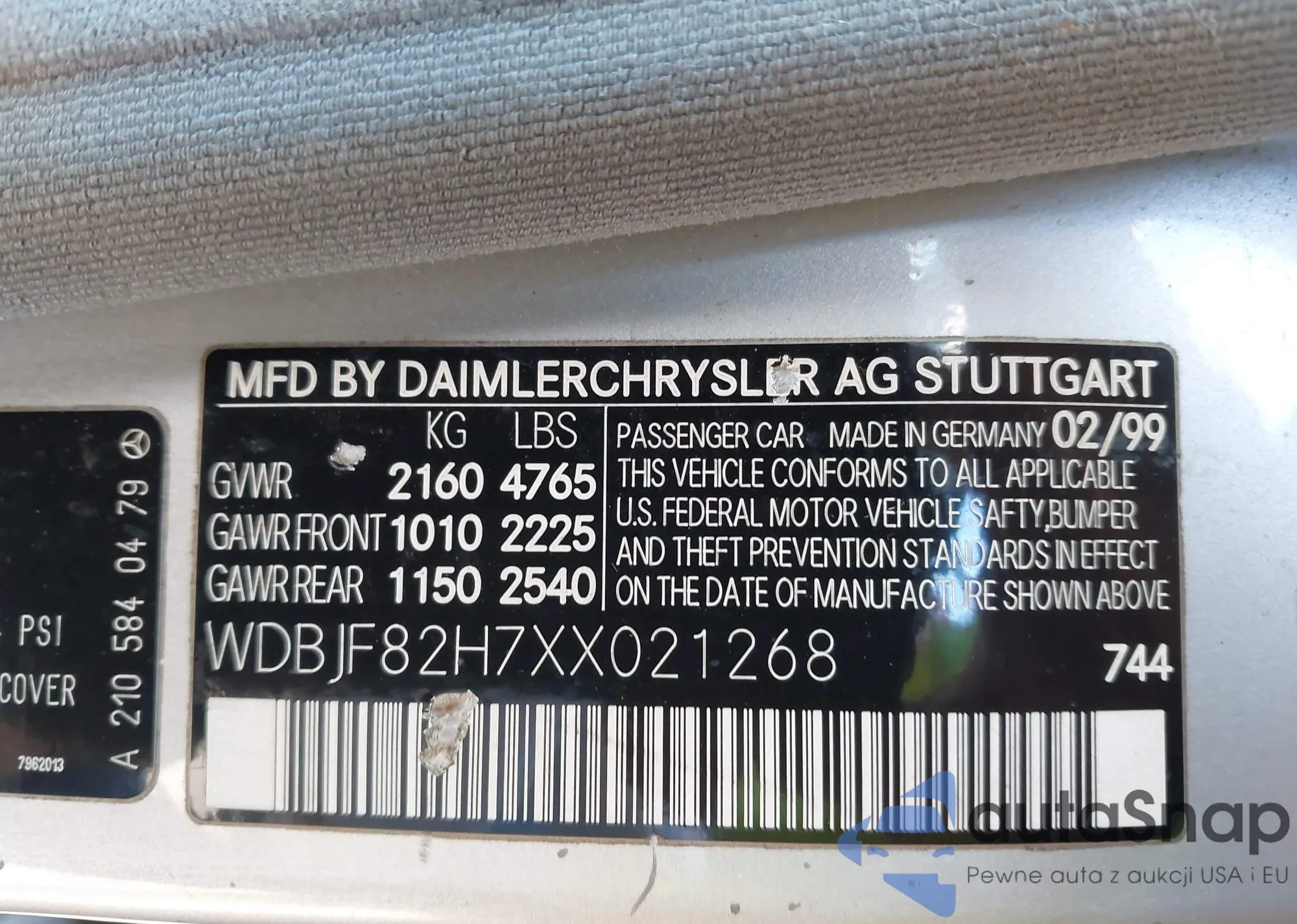 • VIN WDBJF82H7XX021268