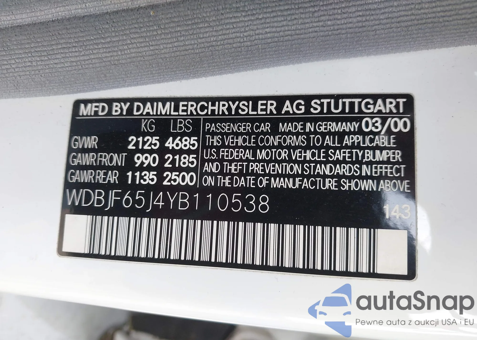 • VIN WDBJF65J4YB110538