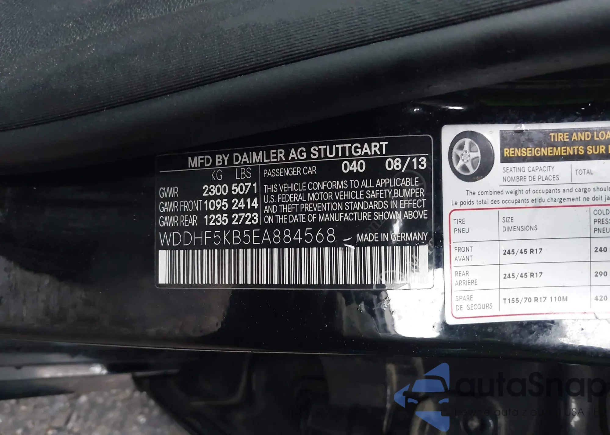 • VIN WDDHF5KB5EA884568