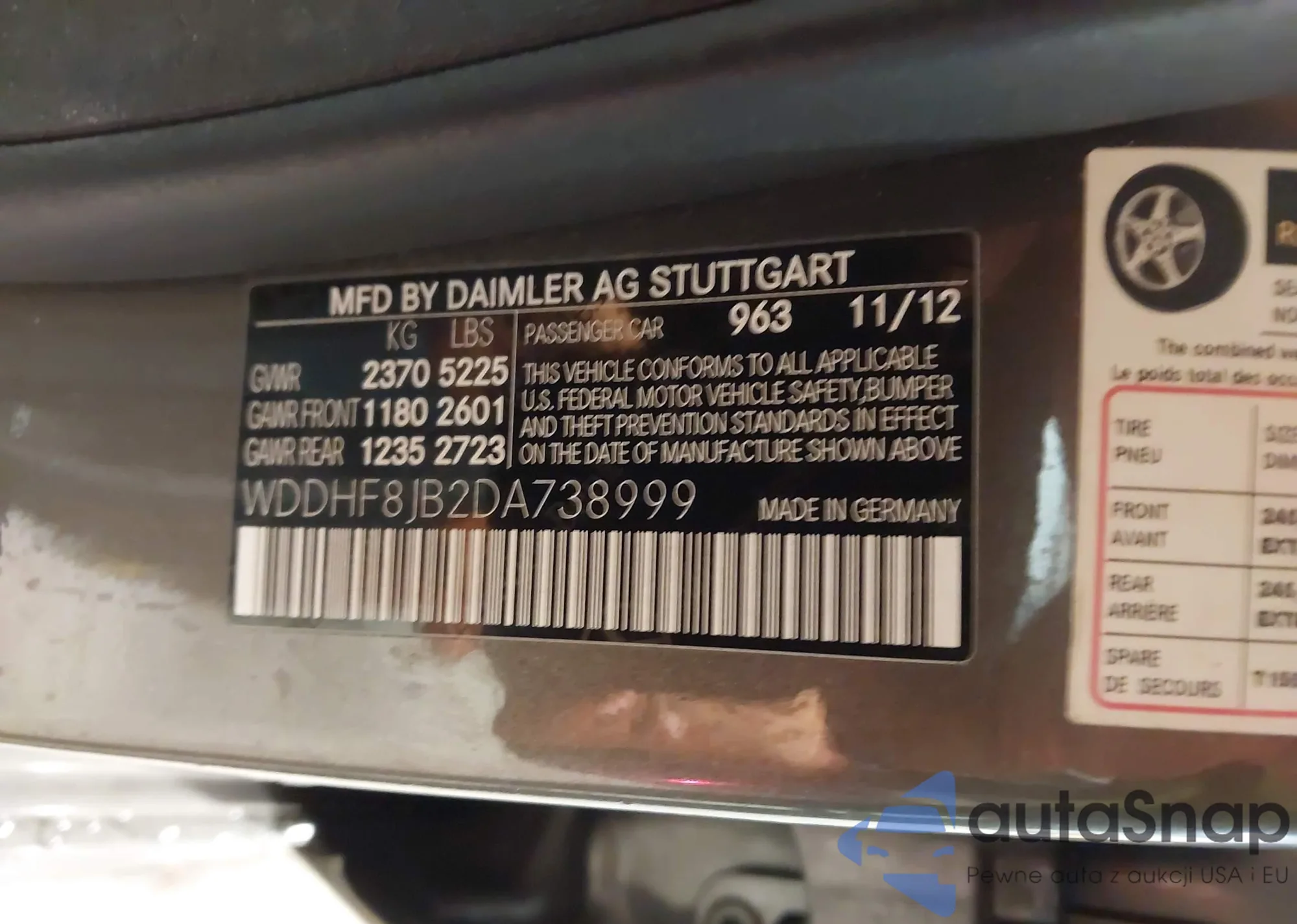 • VIN WDDHF8JB2DA738999