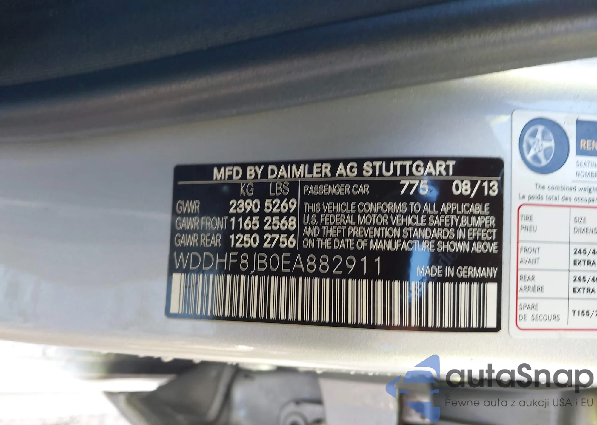 LOT: 43887933 VIN: WDDHF8JB0EA882911