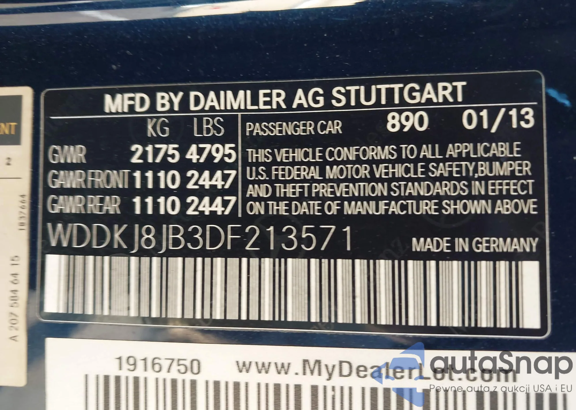 • VIN WDDKJ8JB3DF213571