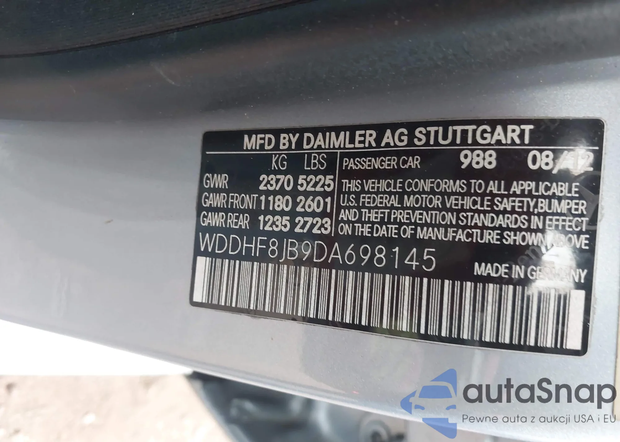 LOT: 44390510 VIN: WDDHF8JB9DA698145