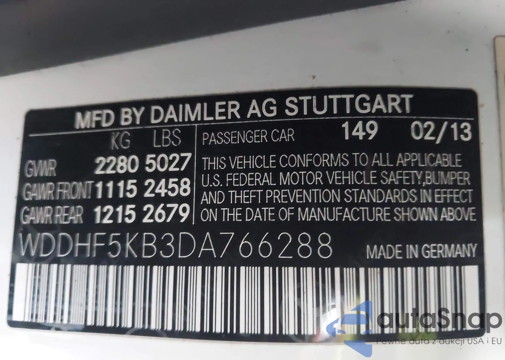 • VIN WDDHF9BB5DA677295