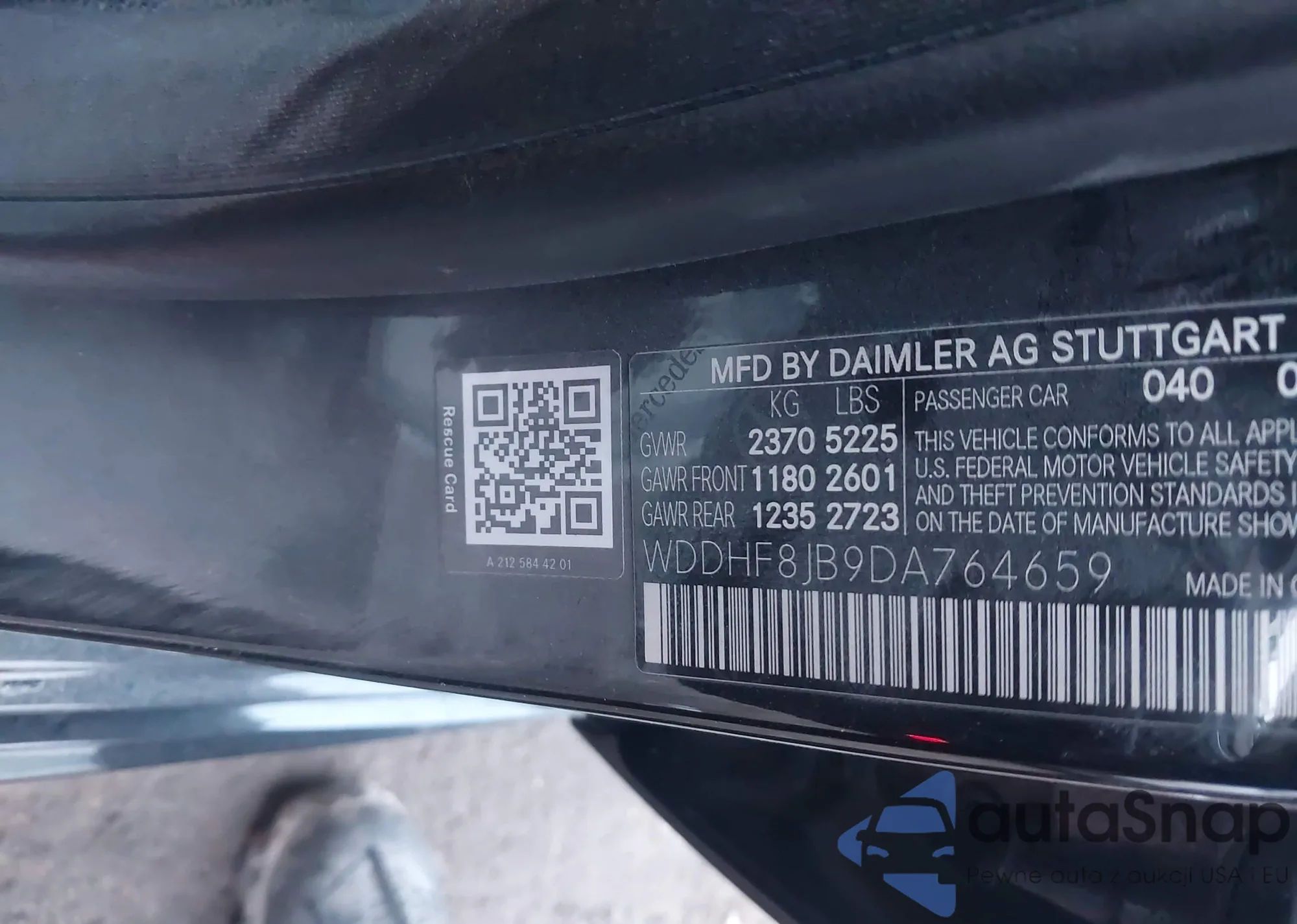 • VIN WDDHF8JB9DA764659