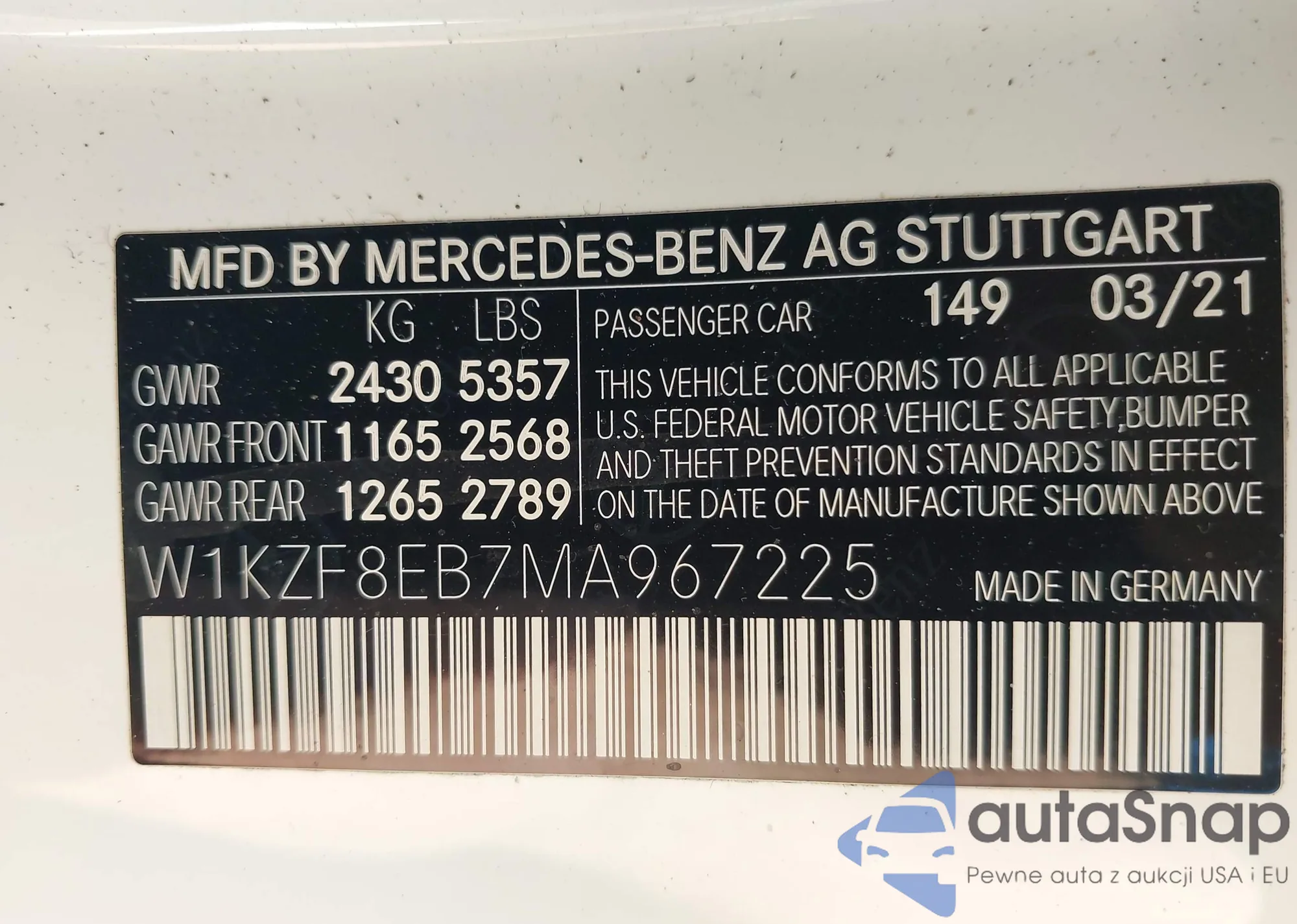 • VIN W1KZF8EB7MA967225